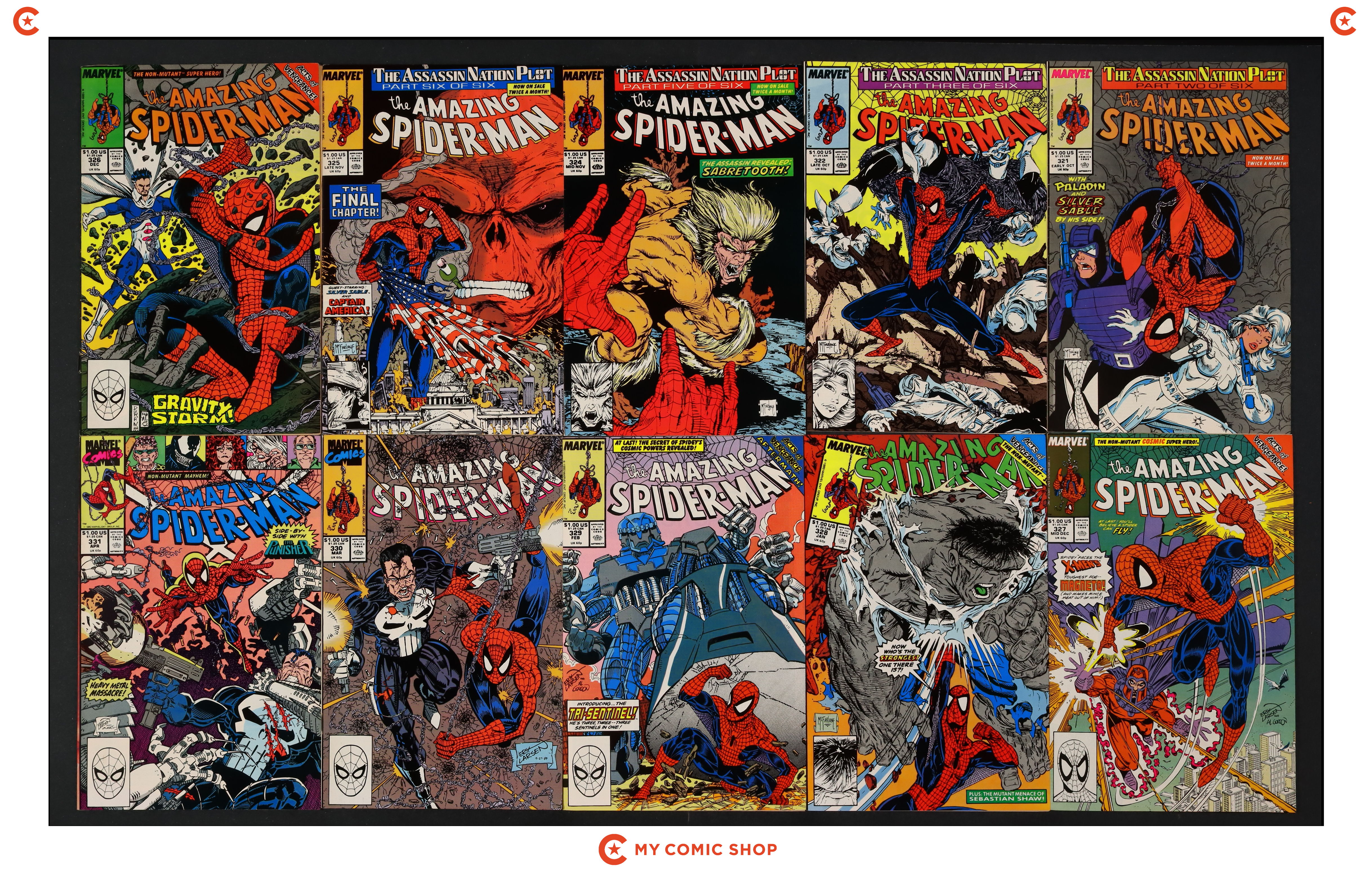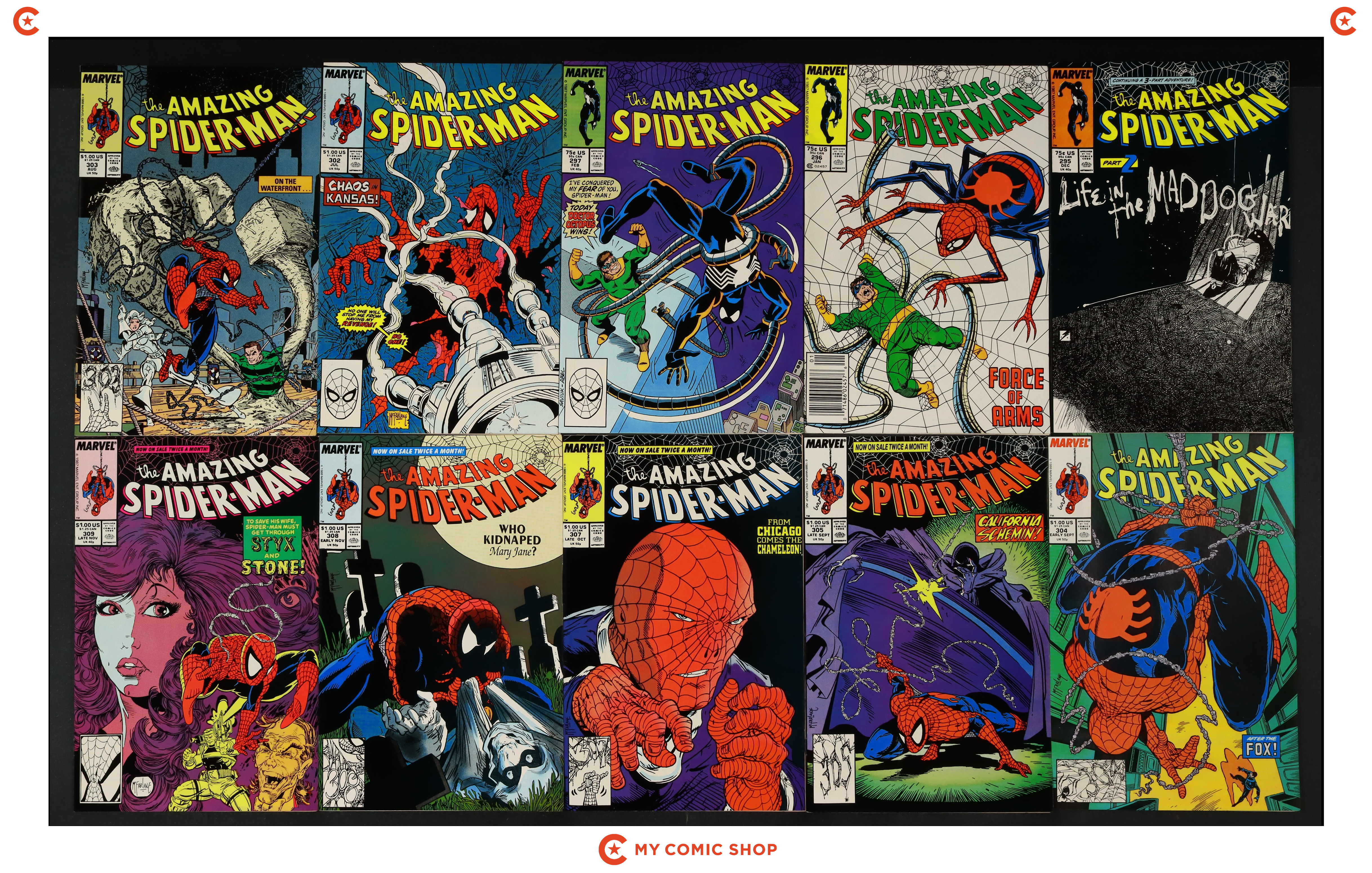 Issues 330D, 331D, 333D, 334-336, 337D, 338-340 of Amazing Spider-Man (1963 1st Series). Most will grade in the VG/FN to VF+ range, with 335 grading at VG-.