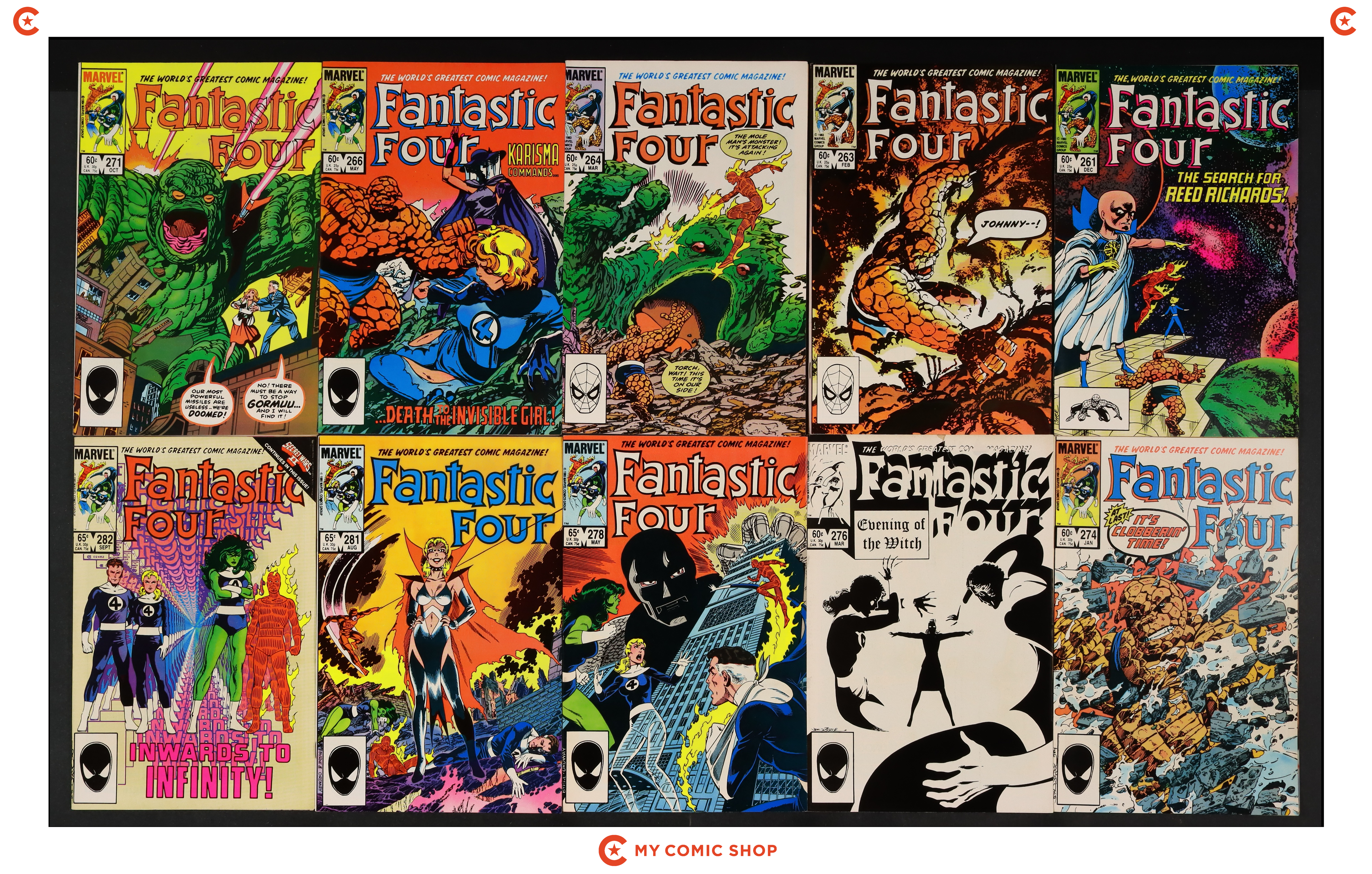 Issues 261D, 263, 264, 266, 271, 274D, 276D, 278, 281, 282 of Fantastic Four (1961 1st Series). Most will grade in the FN to VF range.