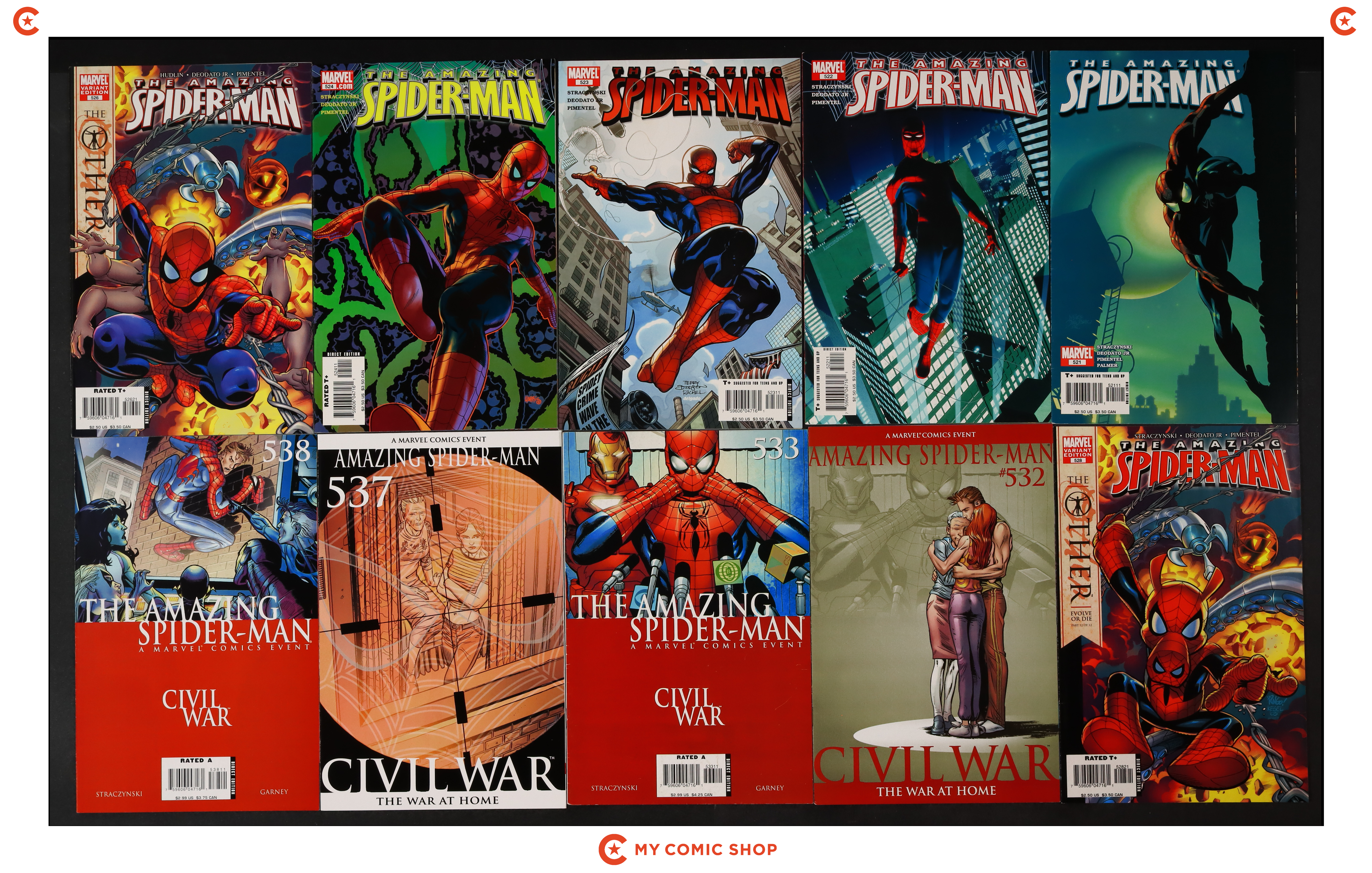 Issues 521-524, 526B, 528B, 532B, 533A, 537B, 538A of Amazing Spider-Man (1998 2nd Series). Most will grade in the FN to VF range with #533 grading VG.