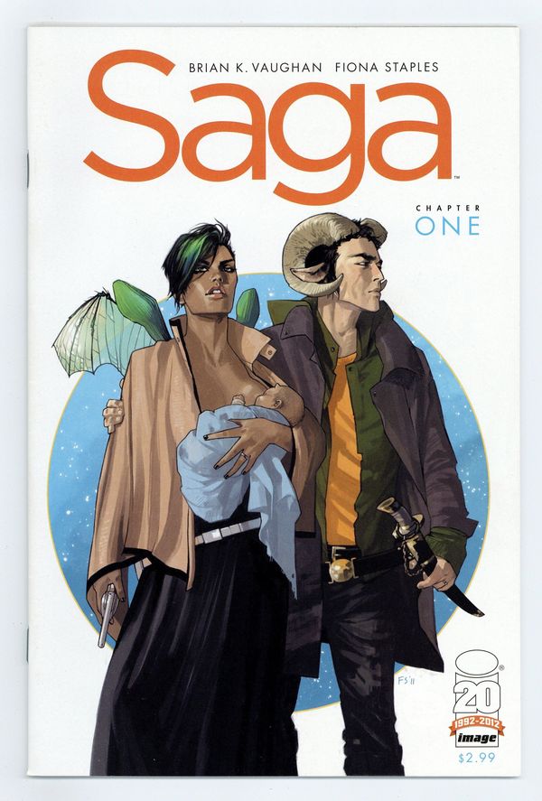Starts Mar 2 (W) Brian K. Vaughan (A/CA) Fiona Staples Y: THE LAST MAN writer BRIAN K. VAUGHAN returns to comics with red-hot artist FIONA STAPLES for an all-new ONGOING SERIES! Star Wars-style action collides with Game of Thrones-esque drama in this original sci-fi/fantasy epic for mature readers, as new parents Marko and Alana risk everything to raise their child amidst a never-ending galactic war. The adventure begins in a spectacular DOUBLE-SIZED FIRST ISSUE, with forty-four pages of story with no ads for the regular price of just $2.99! Cover price $2.99.