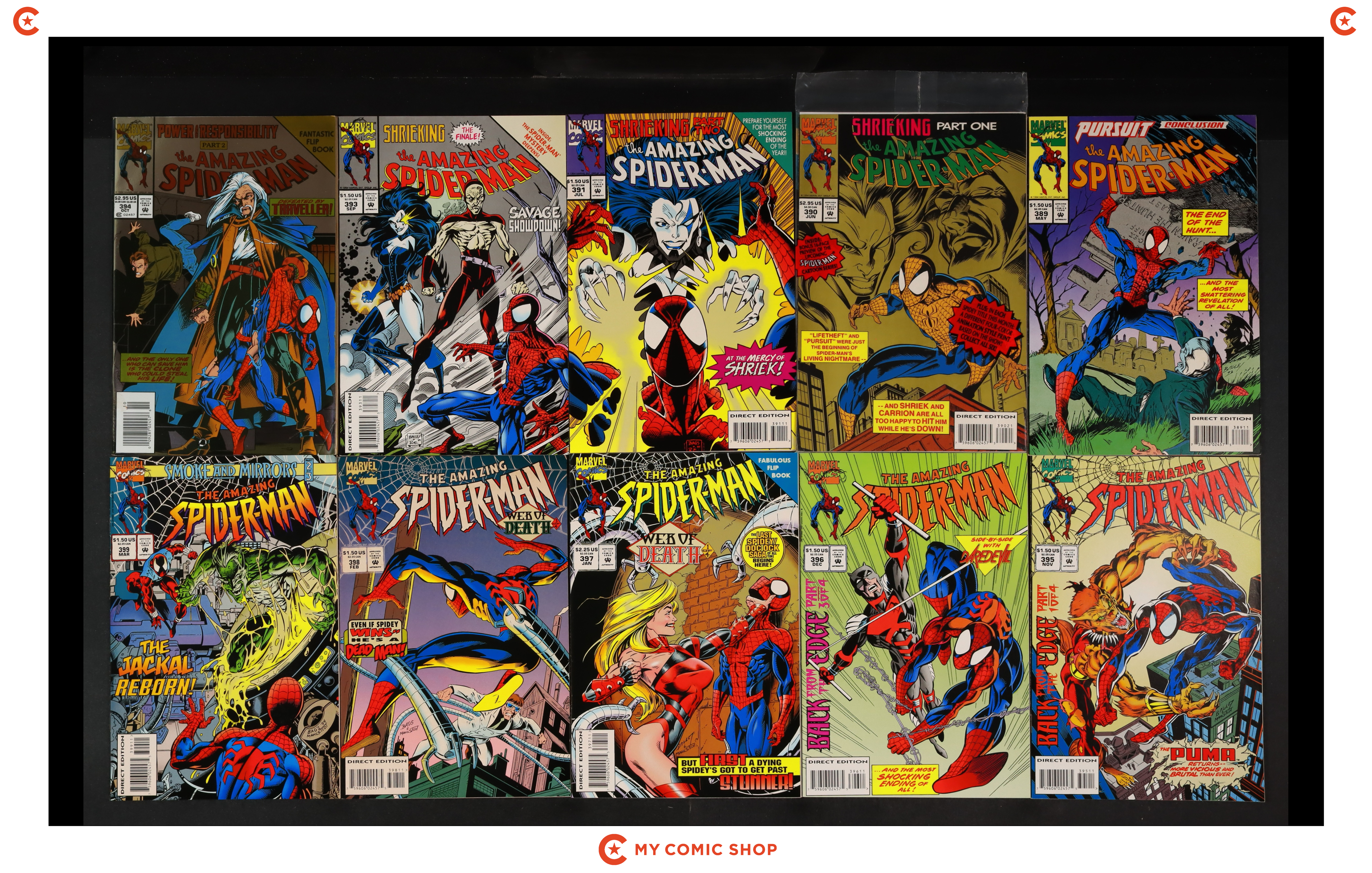 Issues 330D, 331D, 333D, 334-336, 337D, 338-340 of Amazing Spider-Man (1963 1st Series). Most will grade in the FN- to VF+ range.