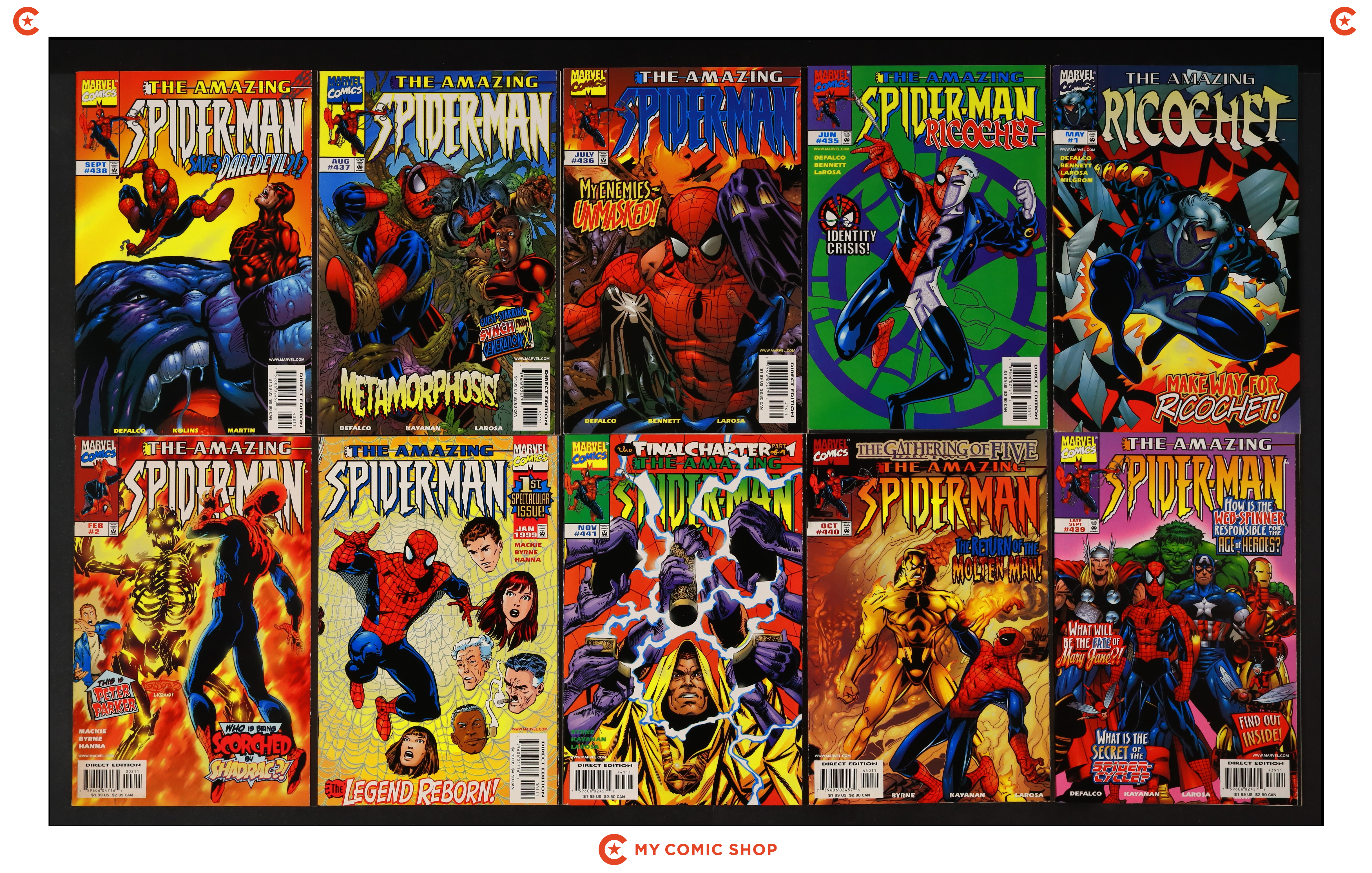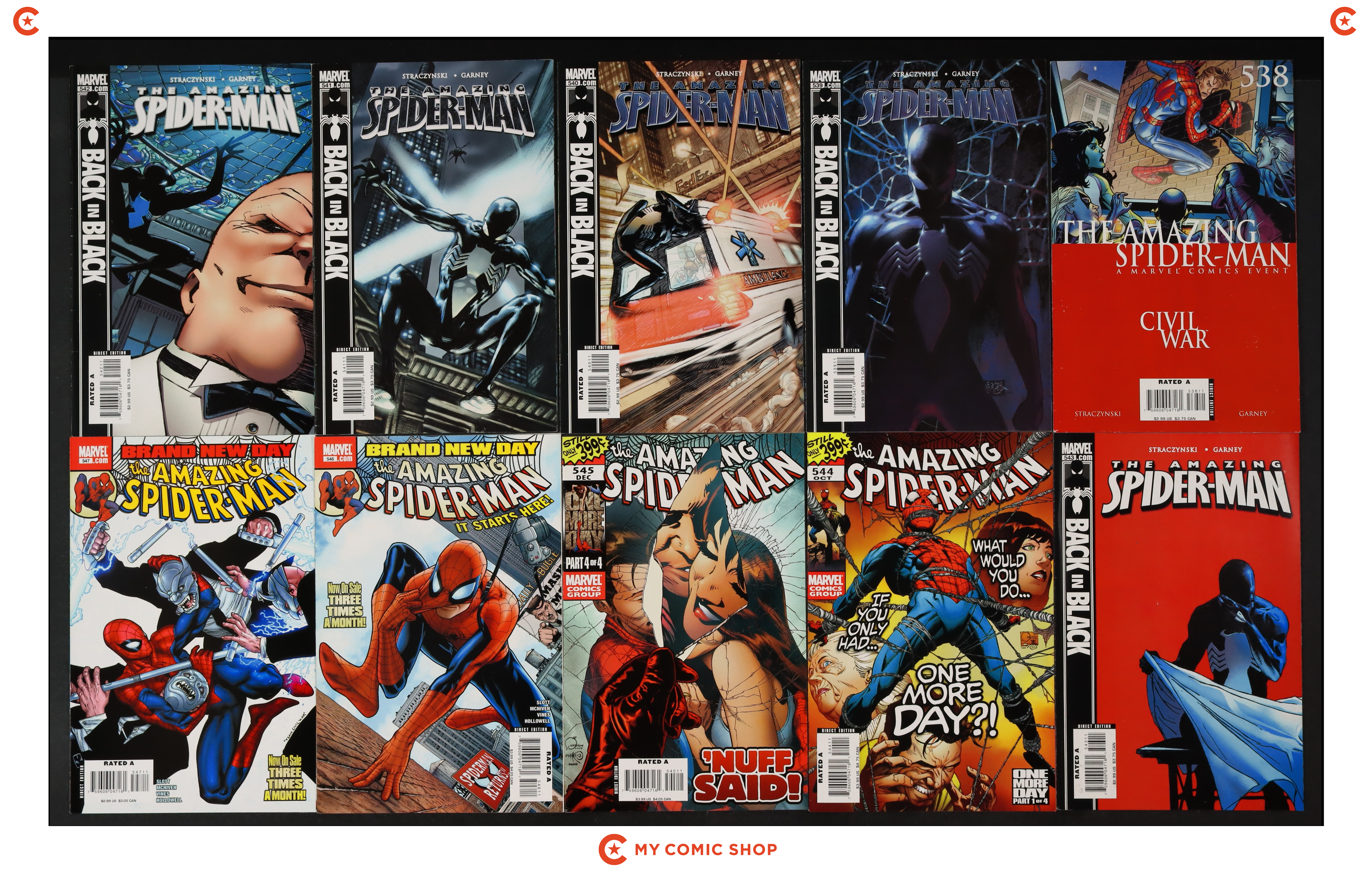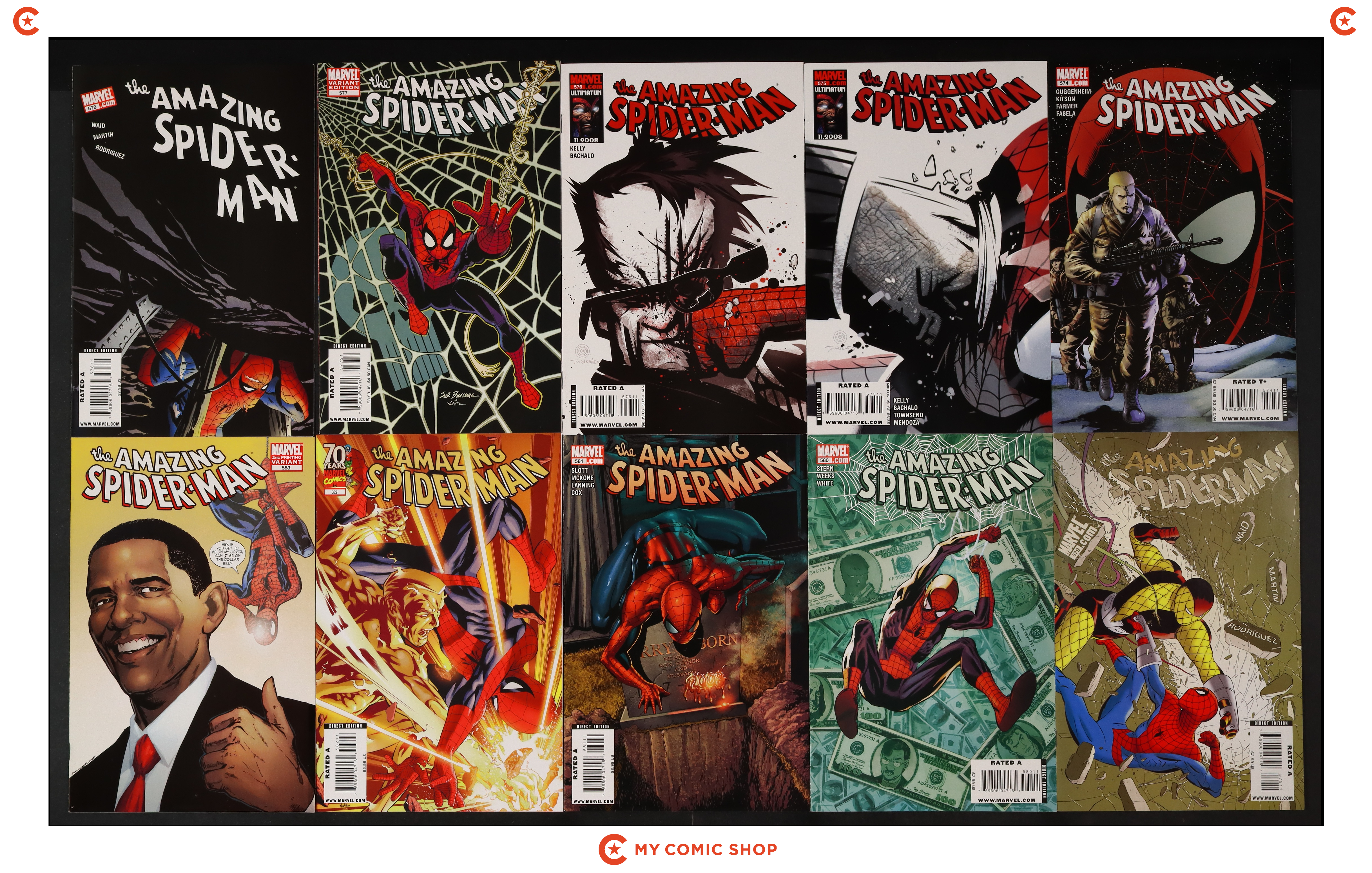 Issues 521-524, 526B, 528B, 532B, 533A, 537B, 538A of Amazing Spider-Man (1998 2nd Series). Most will grade in the FN to VF range with #533 grading VG.