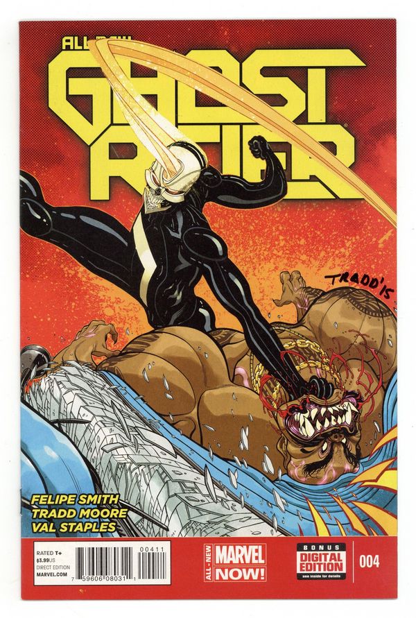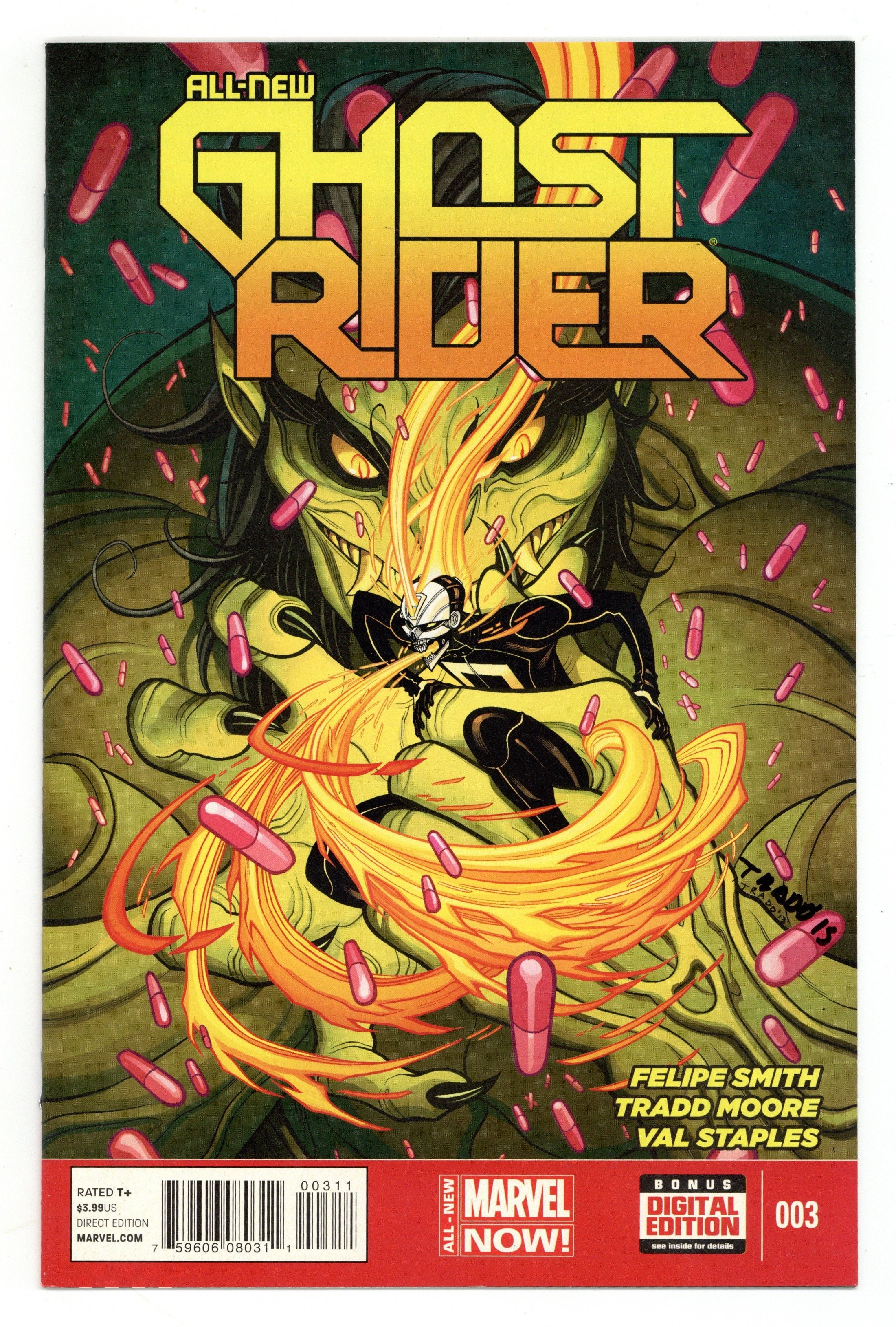 Ends Apr 17 7:16 PM CST Bid History 12 bids Current Bid $66 Your Secret Max Bid If you'd like to bid, please log in or register. Written by Felipe Smith. Art and Cover by Tradd Moore. 'ENGINES OF VENGEANCE' PART 1 A street race leads a young man on the FAST and FURIOUS road of destiny. Amid an East Los Angeles neighborhood running wild with gang violence and drug trafficking, a war brews in the criminal underworld! With four on the floor, Marvel's newest GHOST RIDER puts vengeance in overdrive!!! Cover price $3.99.