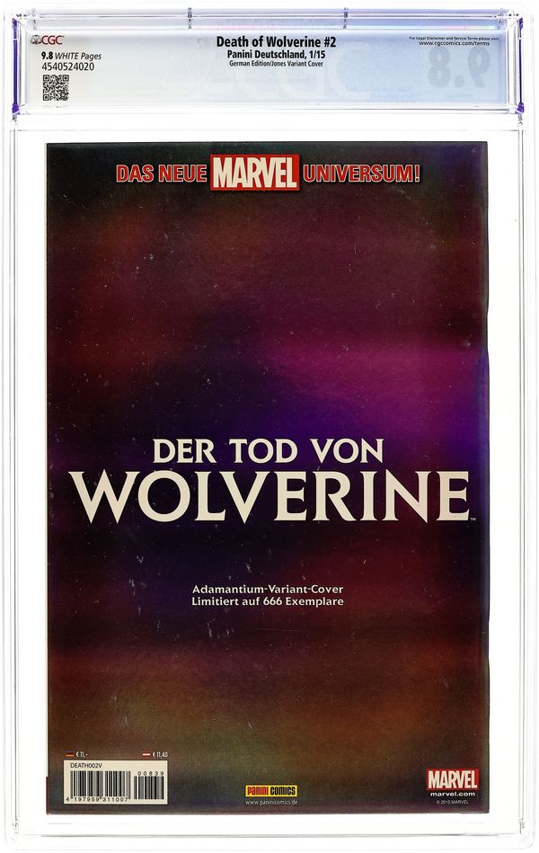 Published Aug 2015 by Panini Deutschland.Der Tod Von Wolverine (German 2015 Panini Deutschland) 2ADAMANTIUM CGC 9.8