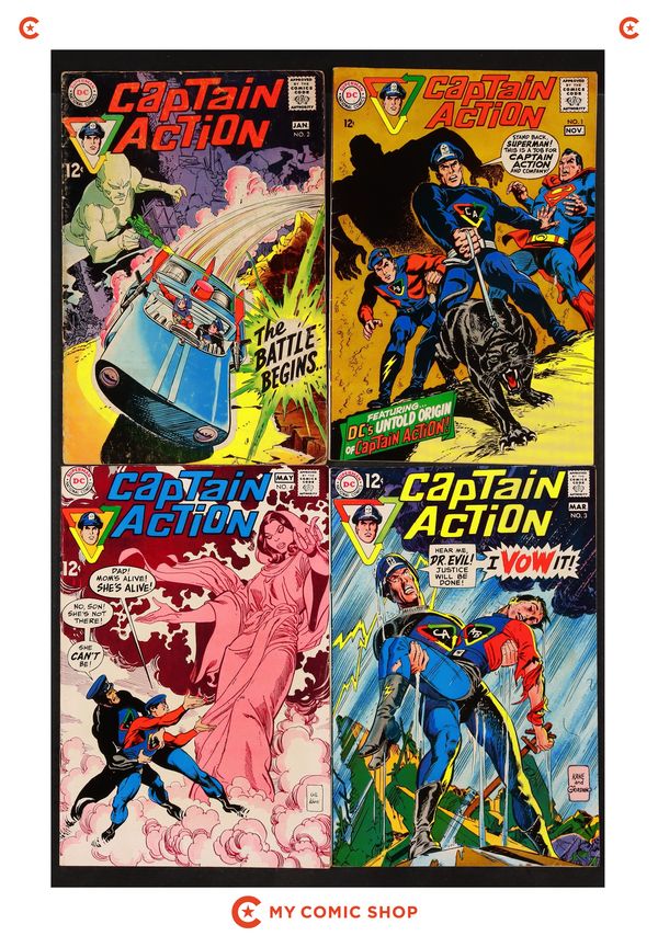 Issues 1-4 of Captain Action (1968 DC National). Most will grade in the GD/VG to VG/FN range.