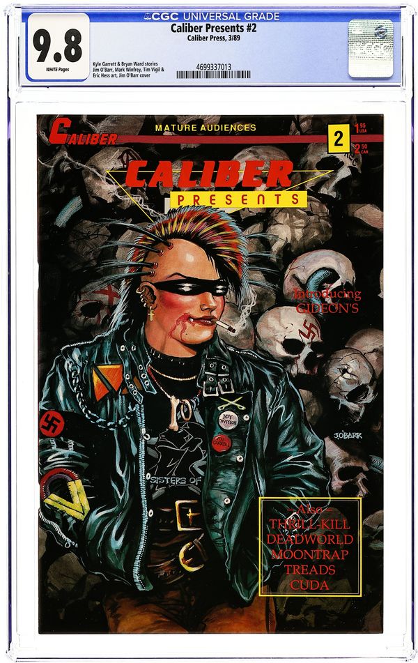 Starts Apr 4 Cover by James OBarr. Stories and art by James OBarr, Vince Locke, Tim Vigil, Mark Winfrey, Bryan K. Ward, Eric Haas and Kyle Garrett. Anthology featuring Caliber artists and characters, as well as stand-alone stories. Gideons by Garrett and OBarr; the sword-and-sorcery strip Cuda; a preview of Bloodworths Deadworld series. 48 pages, B&W. Mature readers. Cover price $1.95.