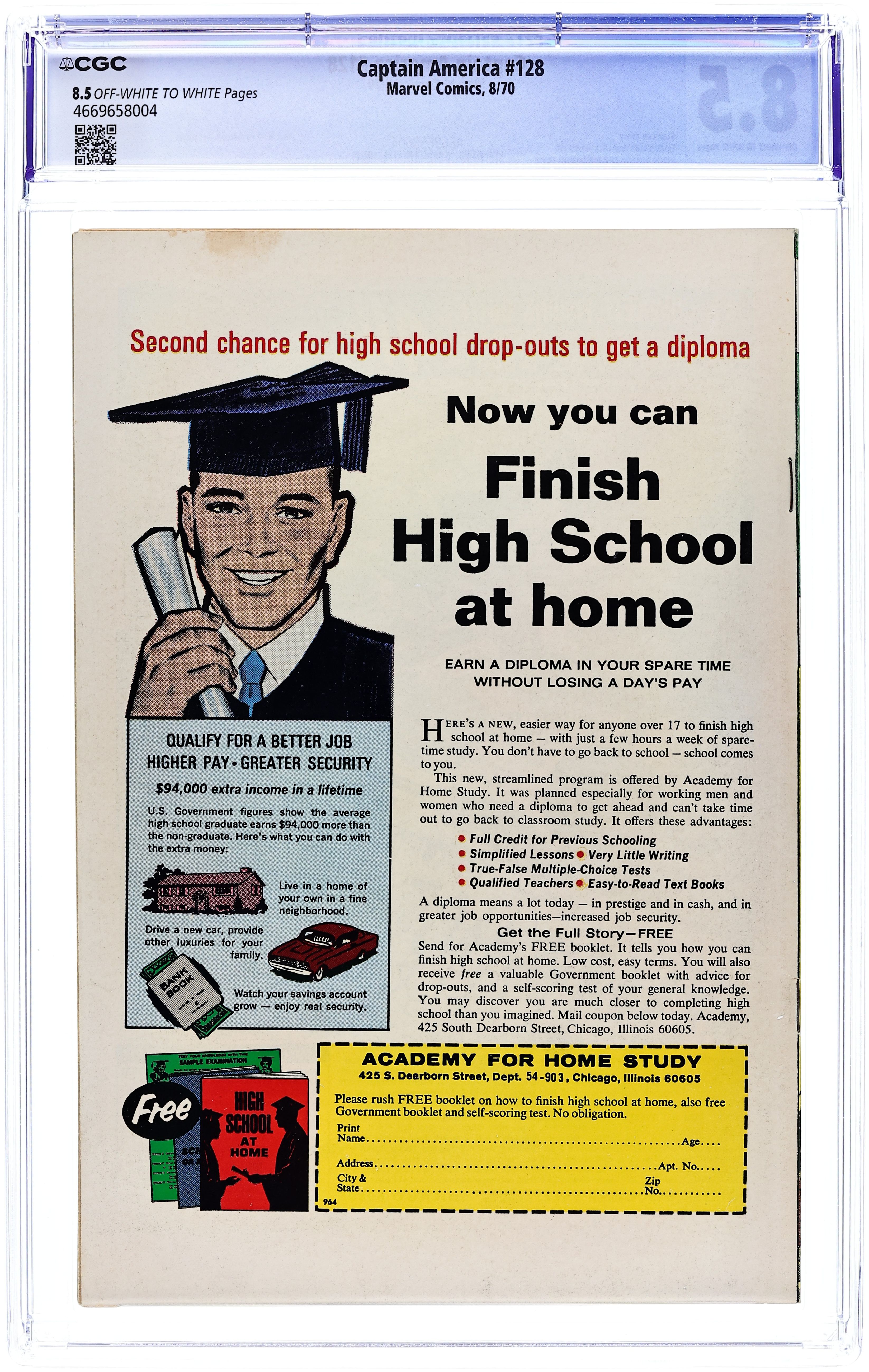 Tags: Marvel Legacy Numbering: Captain America (part 128), Captain AmericaCaptain America (1968 1st Series) 128 CGC 8.5