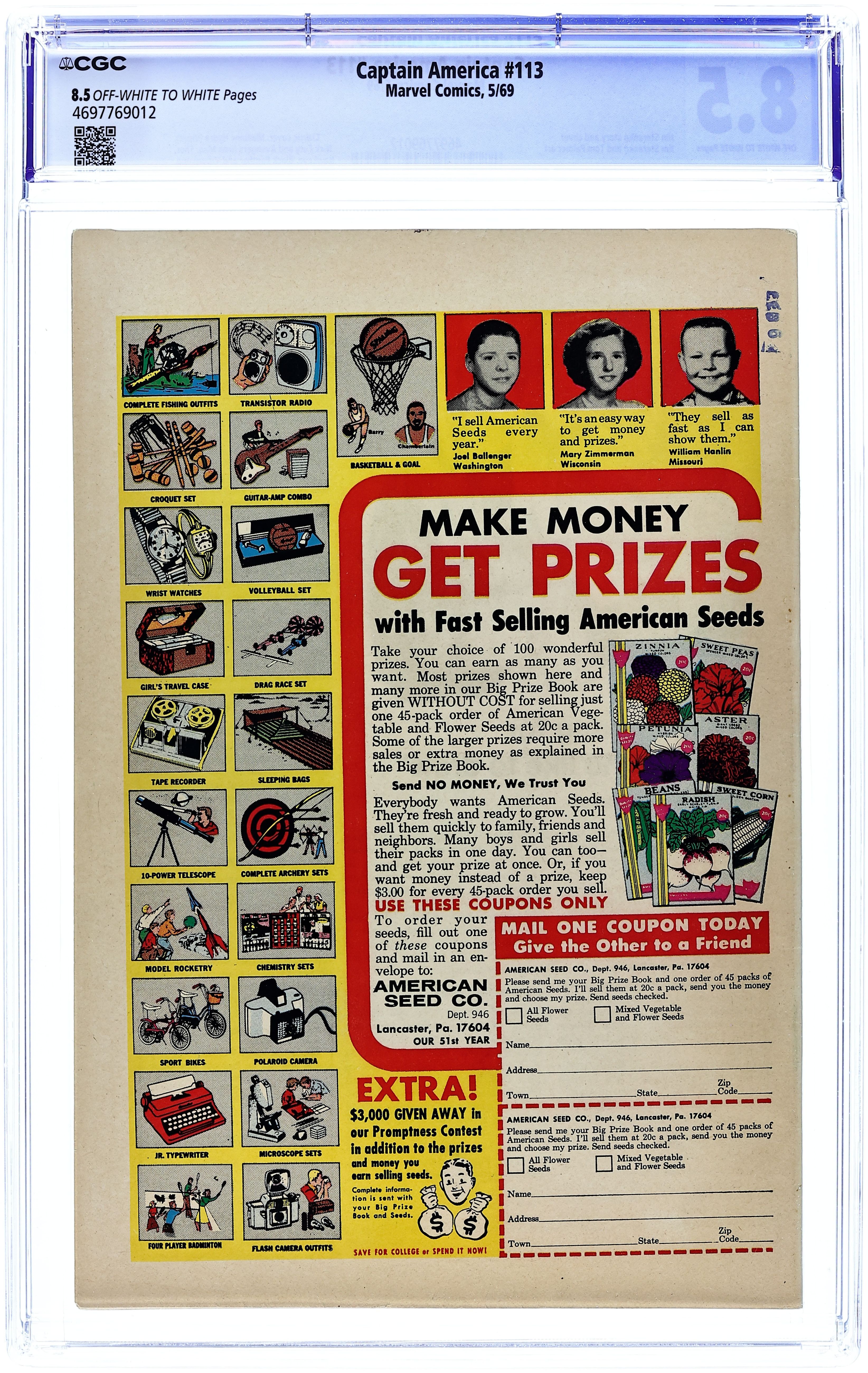 Tags: Marvel Legacy Numbering: Captain America (part 113), Captain AmericaCaptain America (1968 1st Series) 113 CGC 8.5