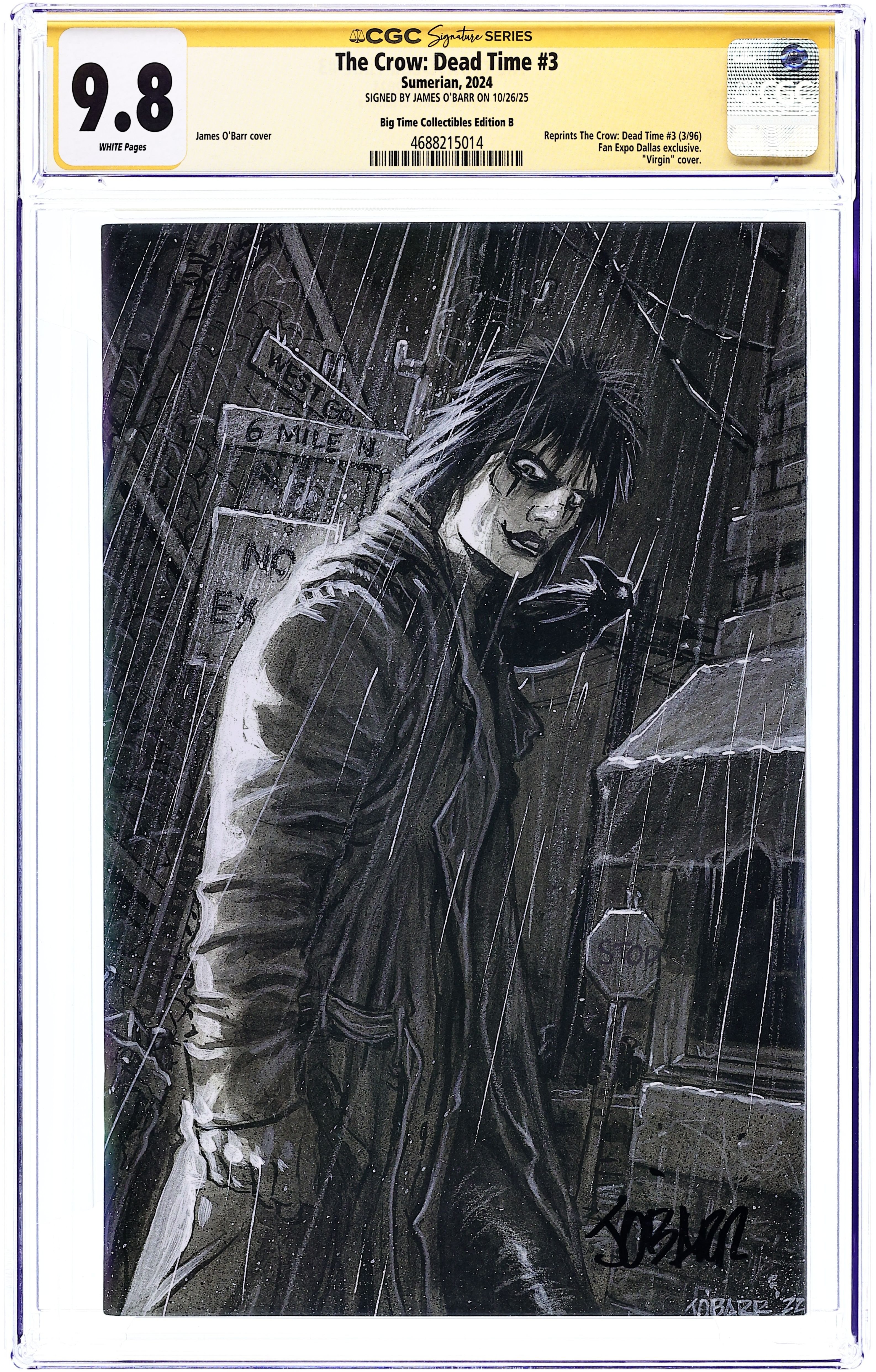 Signed by James O'Barr on 10/26/2025. Big Time Collectibles Edition B.