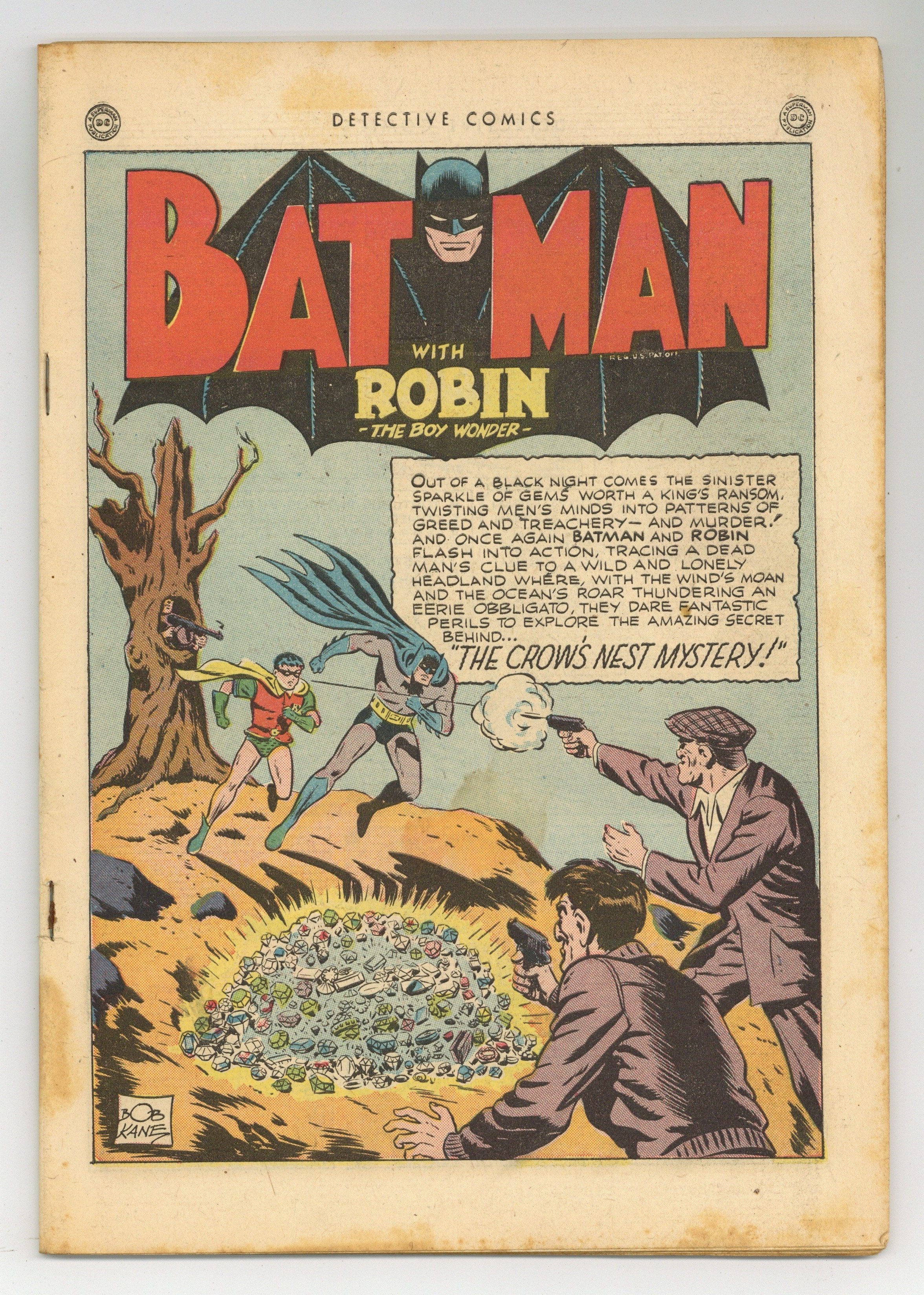 Starts Mar 2 Cover by Dick Sprang. Stories by Don C. Cameron, Jack Farr and unknown. Art by Jack Burnley, Charles Paris, Jack Farr, Howard Sherman, George Roussos and Louis Cazeneuve. Batman and Robin must stop a group of crooks who operate a gem smuggling operation out of the out-of-the-way home of a mystery writer without his knowledge in "The Crow's Nest Mystery!" by Don C. Cameron, Jack Burnley and Charles Paris. Plus: Three-Ring Binks in an untitled story by Jack Farr; Slam Bradley in "Fools about Jewels!" with art by Howard Sherman; Air Wave in "The Living Statues!" with art by George Roussos; and The Boy Commandos in "The Mischievous Mr. McGonigle!" with art by Louis Cazeneuve (not by Simon and Kirby, despite the listed credits). Also: Casey the Cop 1-pager by Henry Boltinoff, and 2-page text story "Masquerade" by Jack Miller (as Jesse Merlan). 52 pages, full color. Cover price $0.10.