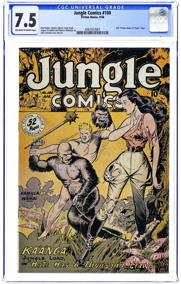 Published Apr 1948 by Fiction House.Jungle Comics (1940 Fiction House) 100 CGC 7.5