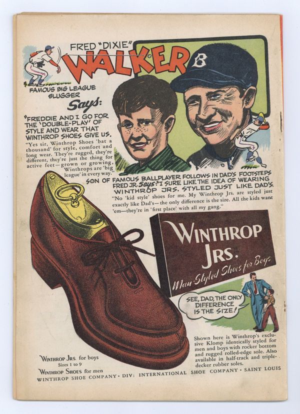 Starts Jan 3 Cover art by John Celardo. "Hate Has a Thousand Claws!", art by John Celardo; Kongola, seeking revenge for the loss of his hands and the scarring of his face at the hands of Kaänga, doses Ann with mind control drugs and has her lead Kaänga to him; Tying Kaänga, he plans to have Ann behead him, but Kaänga breaks free and Kongola is devoured by leopards. Ann, however, remains in a drugged state. Untitled story, art by August Froehlich; Simba and his cub become trapped on a canoe that is bearing medical supplies for a safari; When they wash ashore, they are threatened by the safari but the cub carries the medical package which is recognized by the safari leader who then lets the lions leave. Untitled story, art by Charles Sultan; A fake lancer steals a tribal treasure map; Terry pursues him and demonstrates to the Balongas that the lancers were not guilty of betrayal. Jungle Killers, art by George Evans; A brief look at dangerous jungle animals. Untitled story, art by Frank Doyle; When Tawn and Ogg have a falling out, Wambi decides to pretend to leave the jungle in order to bring his friends back together in pursuit of him. Untitled story, art by Maurice Whitman; Trader Graw makes a deal to provide witch doctor M'pogi with rifles in exchange for the Tanakis' sacred diamonds; They frame an innocent young woman for the theft and execute her; Tabu uses his magic to make it appear that the woman has come back to life and M'pogi and Graw, in terror, leap into a crocodile pool. Denizens from Down-Under Jungle Lore, art by P. Dring. Untitled story, pencils by Matt Baker; Jewel thieves use Camilla's friendly reception at the village of the B'togis as an opportunity to get inside the walled village; They escape with the tribe's gold and Camilla and the chief's daughter as captives. 52 pgs., full color. Cover price $0.10.