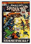 Starts Jan 26 "Gang War, Shmang War! What I Want to Know Is...Who the Heck is Hammerhead?" Part 2 of 3. Script by Gerry Conway. Art by Jim Starlin (breakdowns), John Romita (finishes), and Tony Mortellaro (backgrounds). Cover by John Romita. The wondrous wall-crawler is caught in the middle of a gang war between Doctor Octopus and Hammerhead! Spider-Man doesn't know who the new crime boss is, but he inadvertently helps him by knocking out Doc Ock! Hammerhead is so impressed that he offers the web-spinner a chance to join his organization. However, there's no way Spider-Man would accept the offer...unless it would lead to finding Aunt May! What does Hammerhead know about May Parker's whereabouts? All roads lead north to Westchester for next issue's blockbuster finale! Origin of Hammerhead. First appearance (flashback cameo) of Dr. Jonas Harrow. Cameo appearances by Aunt May, Gwen Stacy, Flash Thompson, and Professor Miles Warren. (Notes: John Romita is credited as a co-plotter. This issue was reprinted in Marvel Tales #93.) 36 pages. Cover price $0.20.