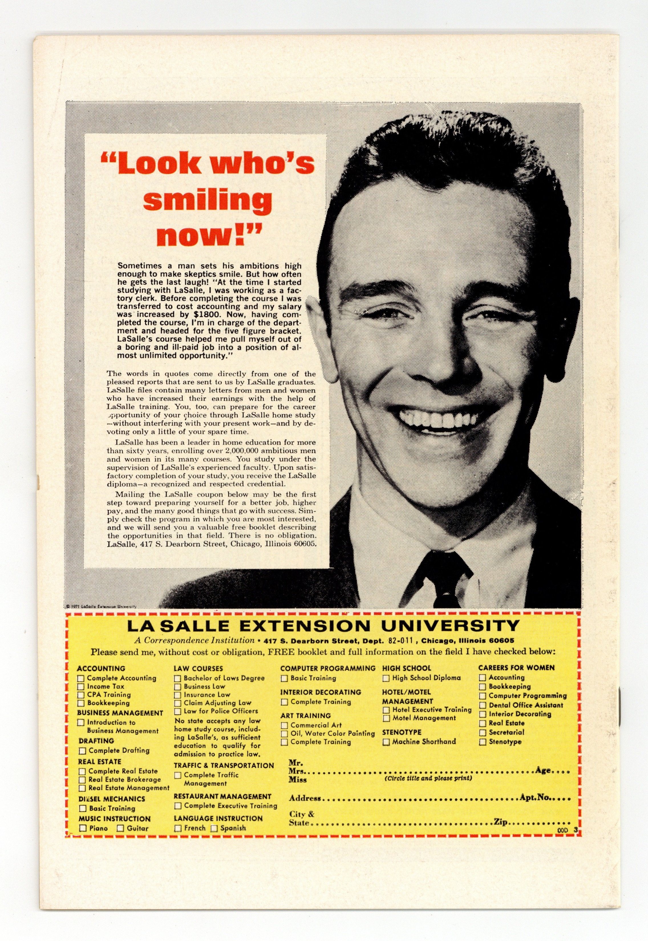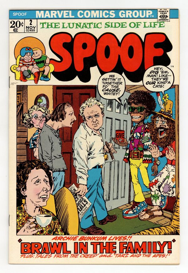 Starts Jan 26 Written by Roy Thomas and Marv Wolfman. Art by Marie Severin and John Costanza (as John Costa). Cover by Marie Severin. Tales from the Creep parody with Adolf Hitler and Sir Ralph Richardson. Written by Roy Thomas. Art by Marie Severin and John Severin. Tarzan parody. After he foolishly signs away the rights to Greystroke, Tarz is forced to fend for himself in the jungle that is urban Africa. Written by Stuart Schwartzberg. Art by Henry Scarpelli. All in the Family parody. 36 pages, full color. $0.20. Cover price $0.20.