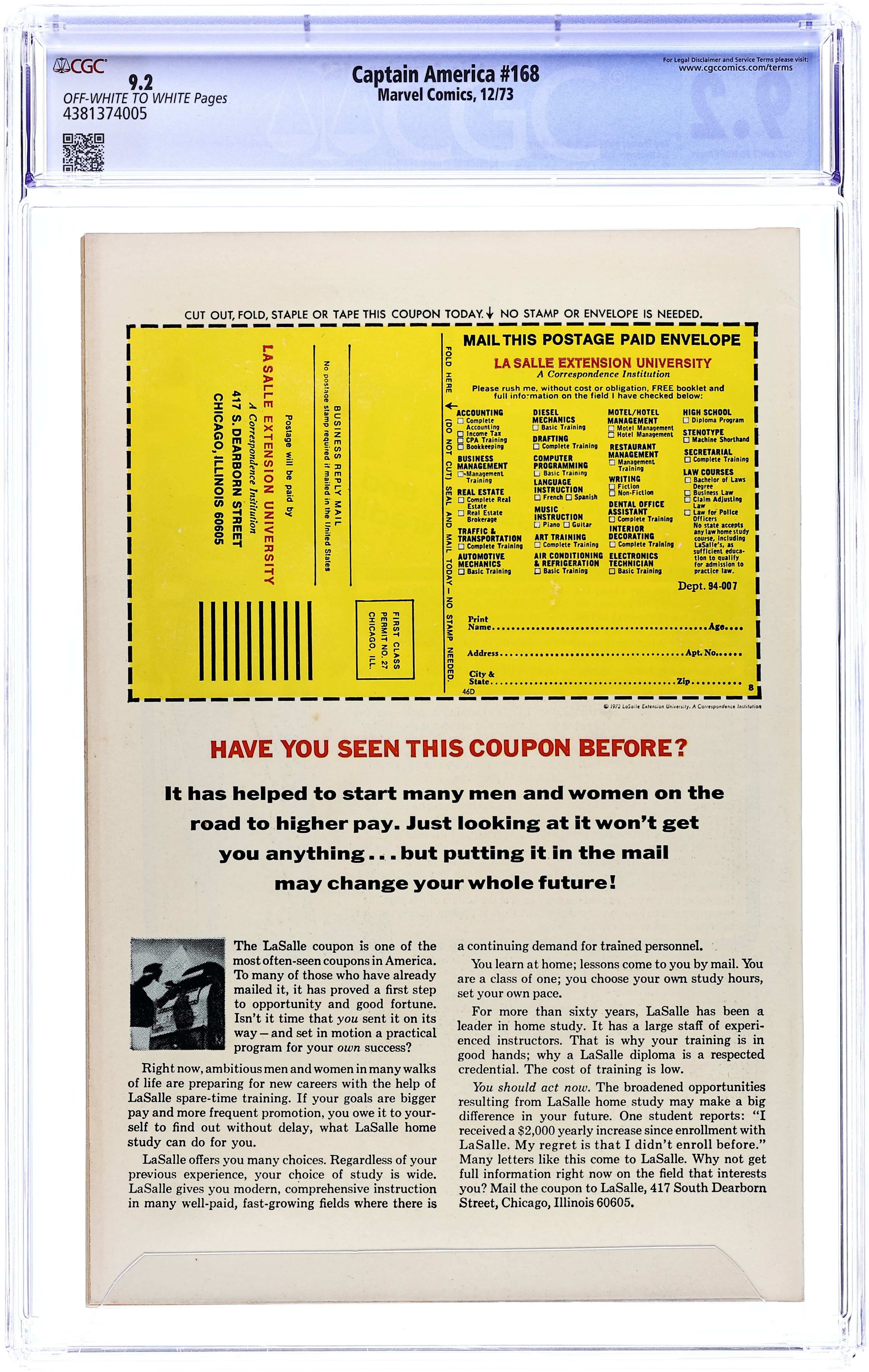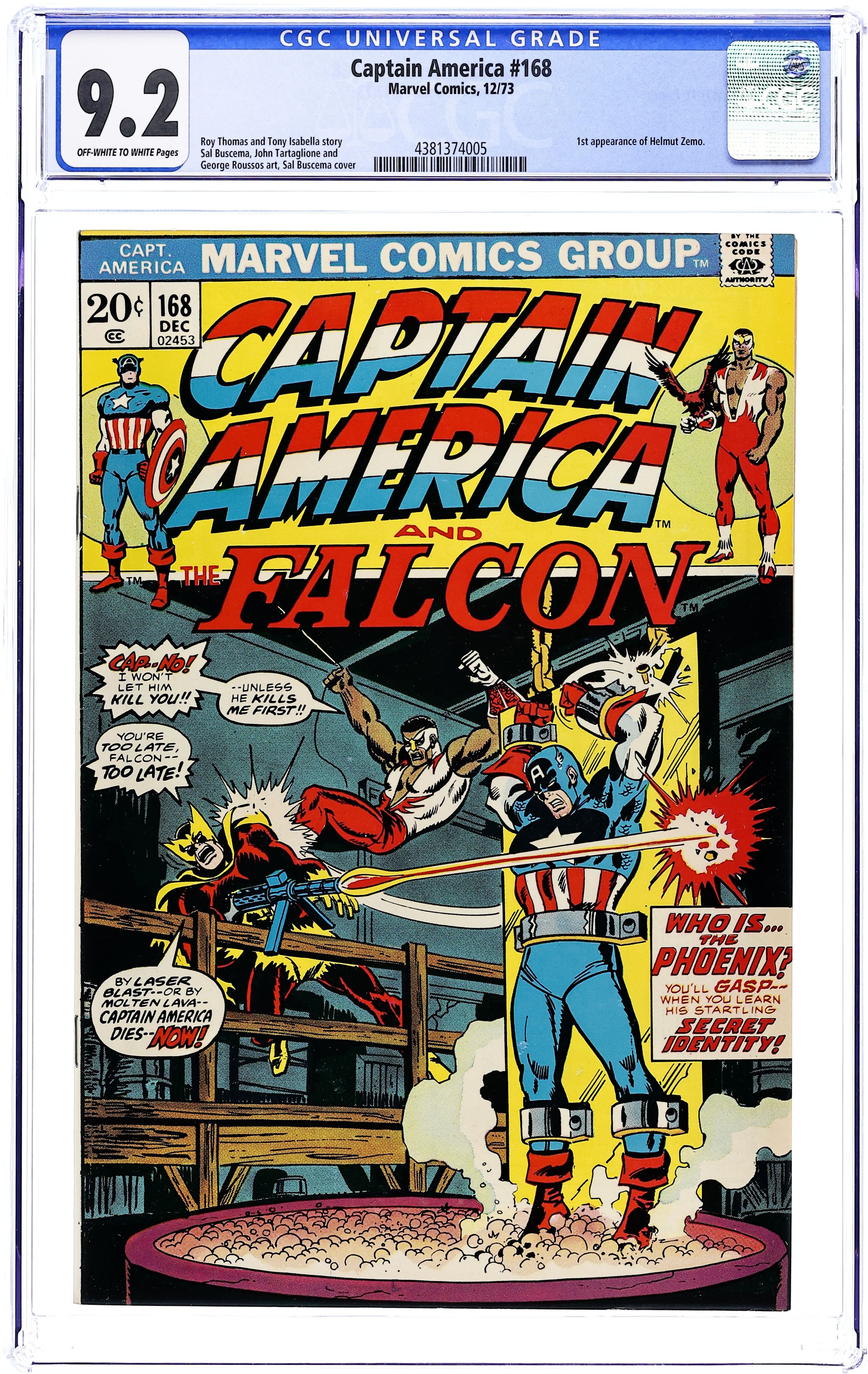 Tags: Marvel Legacy Numbering: Captain America (part 168), Captain AmericaCaptain America (1968 1st Series) 168 CGC 9.2