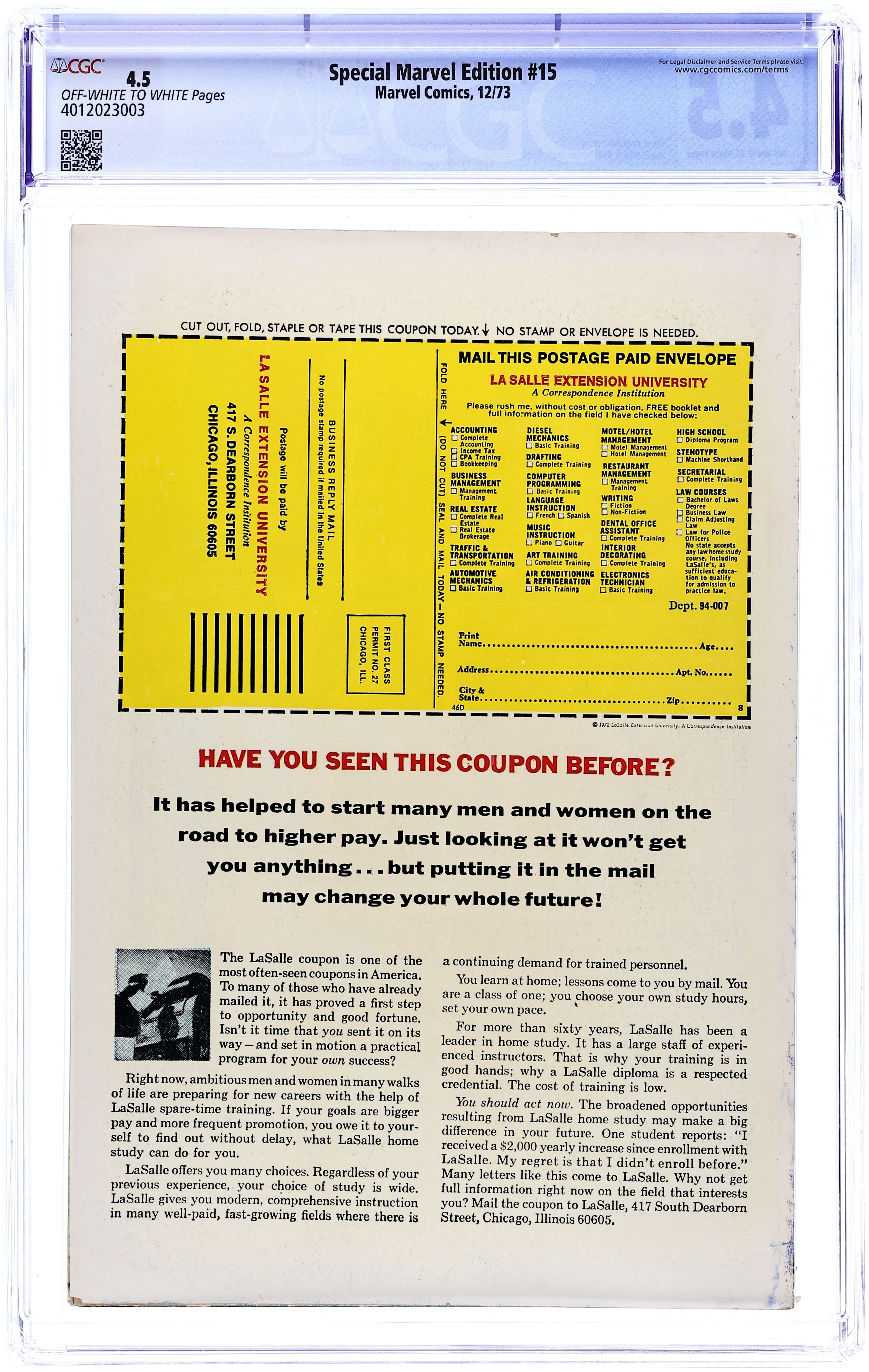 Special Marvel Edition (1971) 15 CGC 4.5
