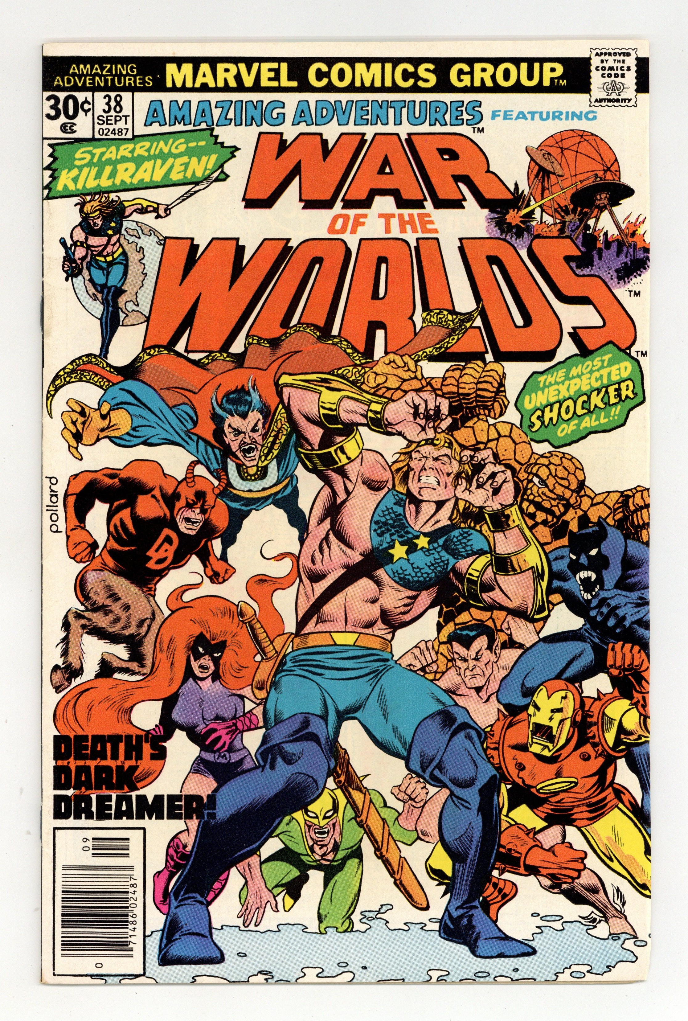 Ends Dec 8 7:13 PM CST Bid History 3 bids Current Bid $4 Your Secret Max Bid If you'd like to bid, please log in or register. First 30-cent cover price. Cover pencils by Keith Pollard (signed) and Marie Severin (alterations), inks by Keith Pollard and Marie Severin (alterations). "Death's Dark Dreamer!", script by Keith Giffen (Co-Plot) and Bill Mantlo (Co-Plot, Script), pencils by Keith Giffen, inks by Al Milgrom; While traveling through the city of Miami on his own, Killraven is drawn into a giant dome which turns out to be the old Miami Museum of Cultural Development; He is lured there by an astronaut who, after a space mission to Mars in the year 1999, found himself bombarded with strange radiation and being put into a coma-like state; Stored in the museum, the dreaming astronaut sought to bring people to the museum in order to rouse him from his long slumber; In order to do so, he uses the building's holographic and virtual reality devices to create constructs from Earth's heroic age, and many of its now deceased heroes, and forcing Killraven to battle them; Killraven is able to battle off and defeat the collection of heroes which have been perverted into almost demonic-looking beings. Brief appearances by Iron Man, Man-Thing, Doctor Strange, the Fantastic Four, the Avengers, and Daredevil. 36 pgs, full color. $0.25. Cover price $0.30.