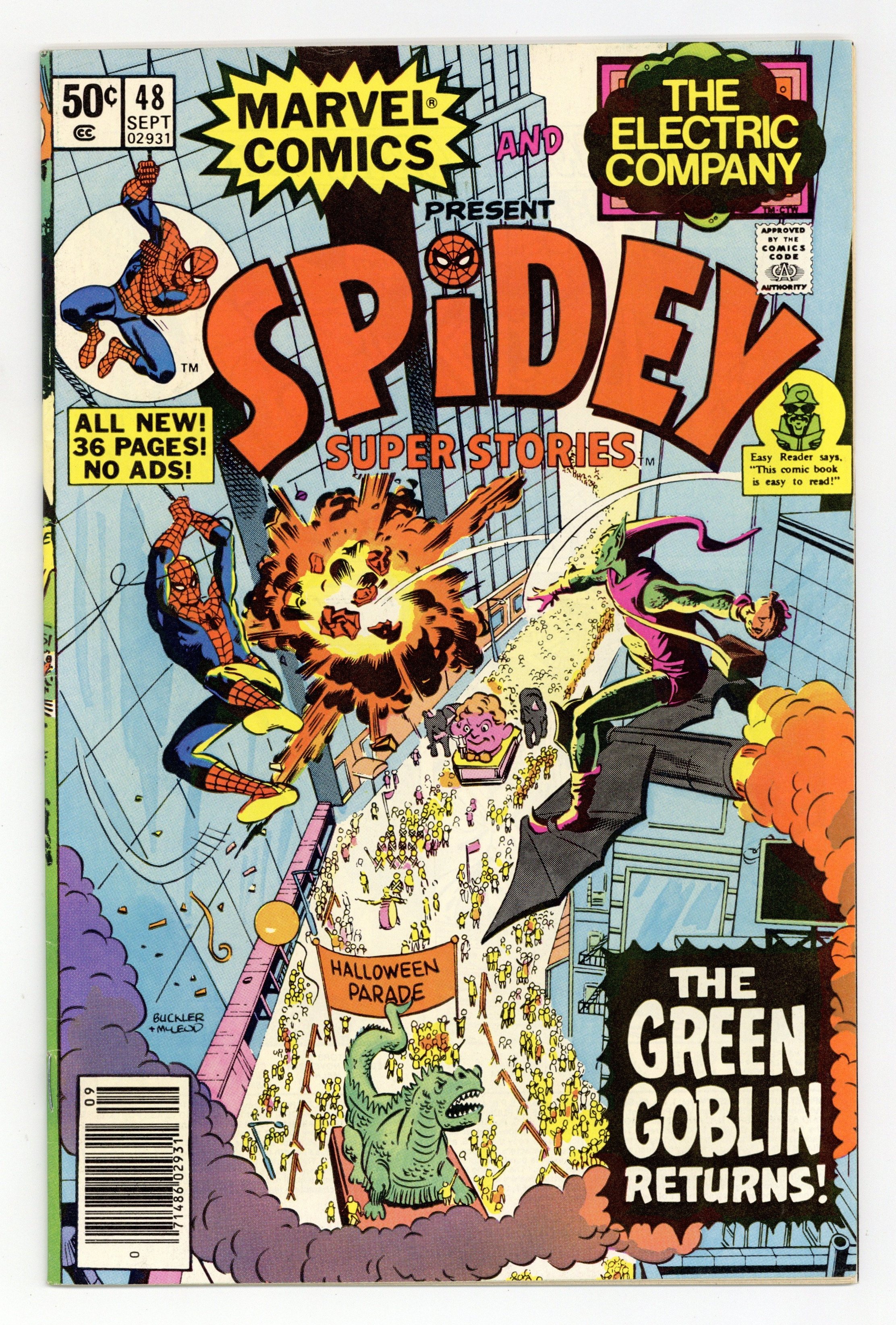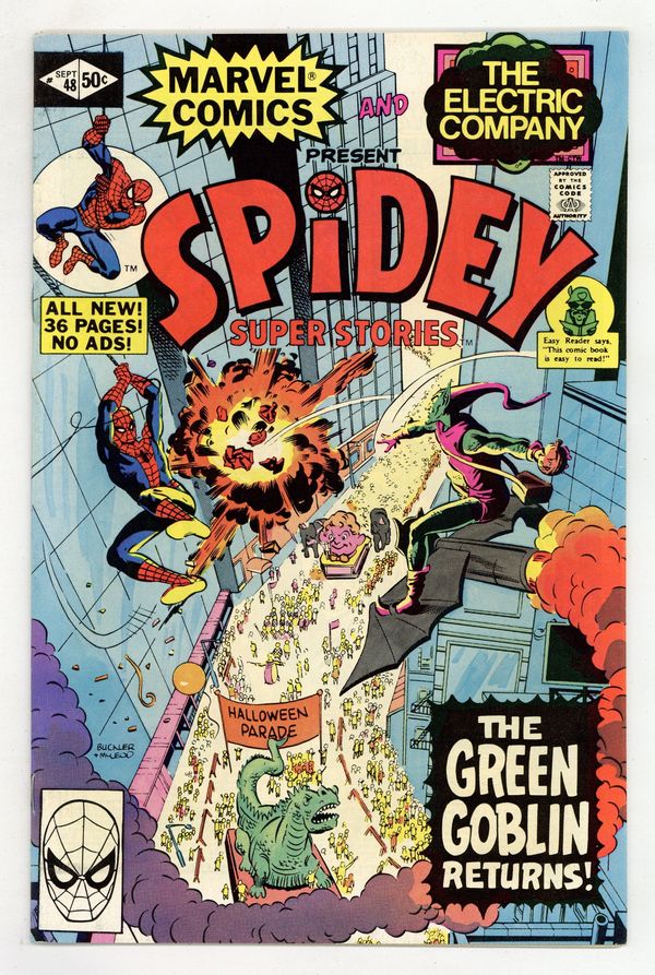Starts Dec 15 "The Roots of Evil!" Guest-Starring Power Man. Story by Jim Salicrup and Michael Siporin. Art by Winslow Mortimer, Ricardo Villamonte, and Mike Esposito. Spidey and the super-strong Luke Cage battles the Plantman. Includes the 1-page features "The Power Man Story," "Who is the Impossible Man?,"and "Wit of the Webslinger." Includes the back-up tale "Impossible Airport!" Guest-starring the Impossible Man and the cast of the Electric Company. Plus, Spidey battles the Green Goblin in "Happy Halloween from the Green Goblin!" Featuring the clip and collect Spidey Stamp: #32 Power Man. Cover price $0.50.