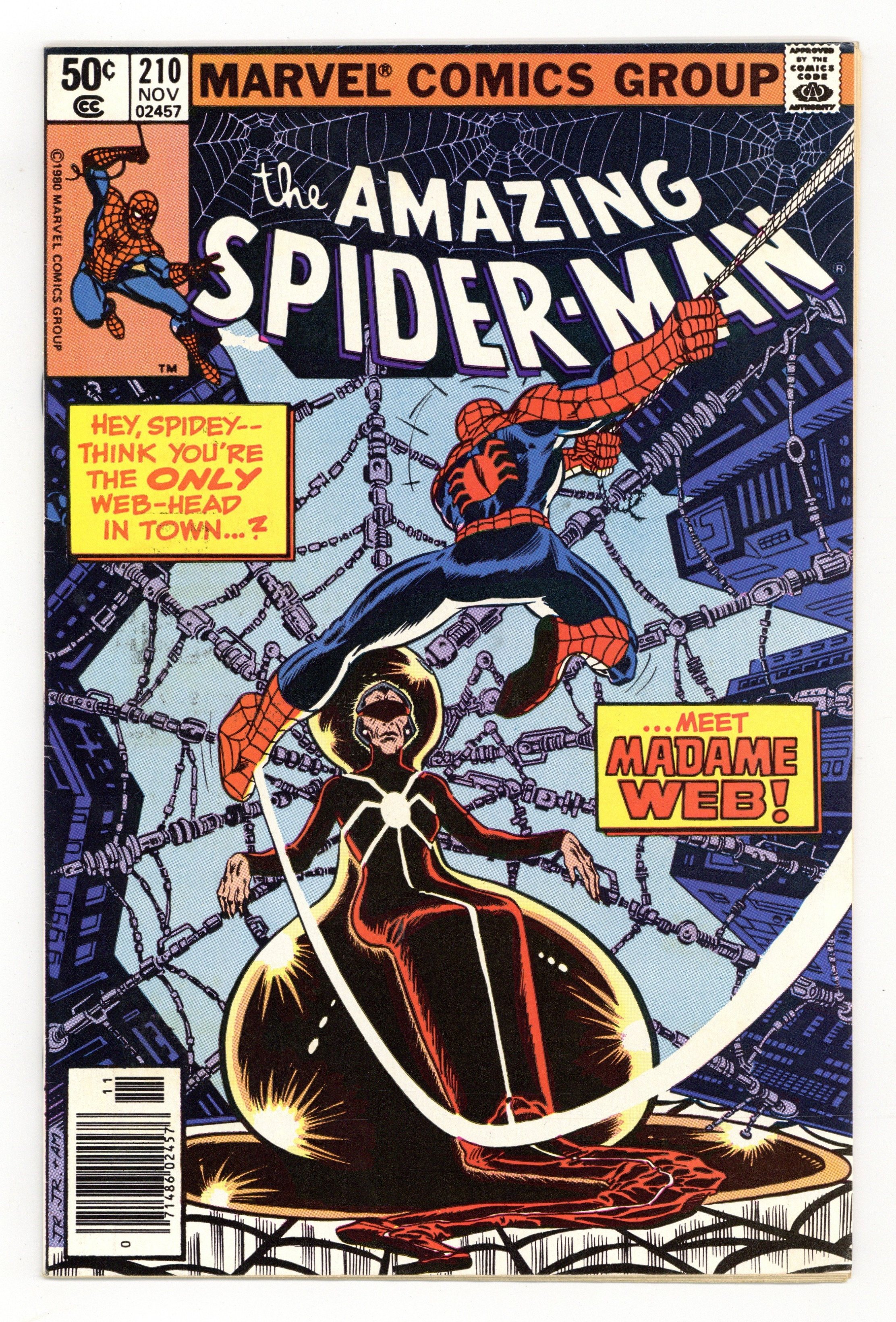 Ends Jan 15 7:27 PM CST Bid History 4 bids Current Bid $31 Your Secret Max Bid If you'd like to bid, please log in or register. Direct Edition. "The Prophecy of Madame Web!" First appearance of Madame Web. Script by Denny O'Neil. Art by John Romita Jr. (breakdowns) and Joe Sinnott (finishes). Cover by John Romita Jr. and Al Milgrom. Masked gunmen barge into the board room of the Daily Globe and kidnap its publisher K.J. Clayton! Fortunately though, the web-slinger is nearby and gives chase! The wall-crawler doesn't catch the criminals, but he does catch a clue! A mysterious clairvoyant called Madame Web is somehow connected to the victim! After befriending the aging soothsayer and heeding her advice, Spider-Man rushes off to the rescue! Can the web-slinger find the missing publisher and get the Daily Globe back in circulation? Cameo appearance by J. Jonah Jameson. (Notes: Peter Parker ends his employment with the Daily Globe. Madame Web appears next in Amazing Spider-Man 216. John Romita Jr. begins his three-and-a-half year run as the penciler of the Amazing Spider-Man title.) 36 pages, full color. Cover price $0.50.