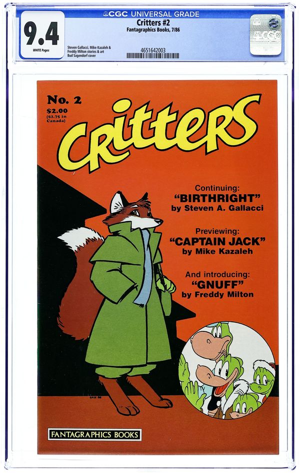 Published Jul 1986 by Fantagraphics.Critters (1986) 2 CGC 9.4