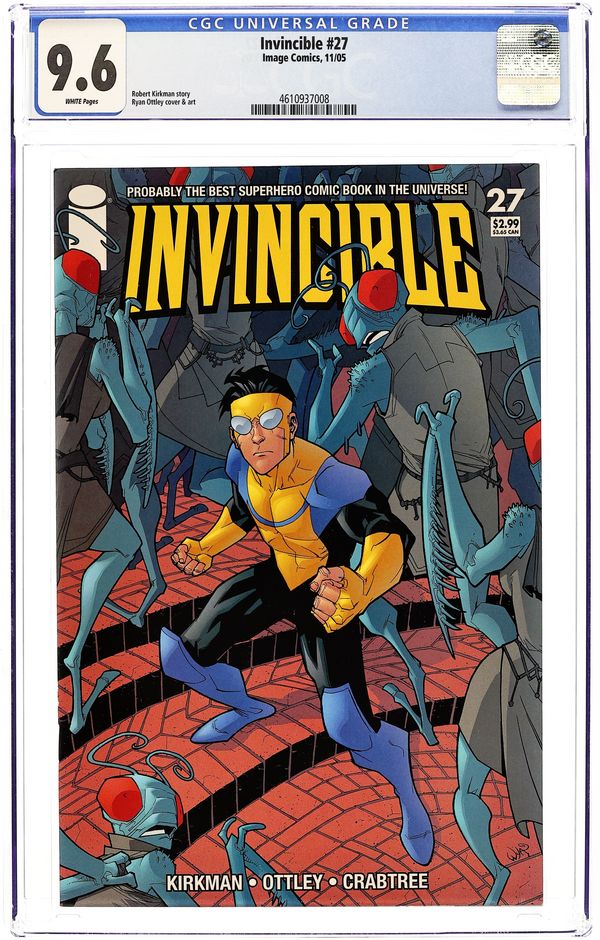 Ends Dec 8 8:38 PM CST Bid History 5 bids Current Bid $41 Your Secret Max Bid If you'd like to bid, please log in or register. September 21 ? 32 pg ? FC ? $2.99 written by ROBERT KIRKMAN art & cover by RYAN OTTLEY & BILL CRABTREE "A DIFFERENT WORLD," Part Three. The most climactic and earth-shattering story arc in INVINCIBLE history continues! The world around Mark is new and different ? it's filled with strange beings and infinite dangers ? dangers only he can stop. Could that be the reason he was brought here? Cover price $2.99.