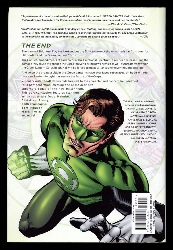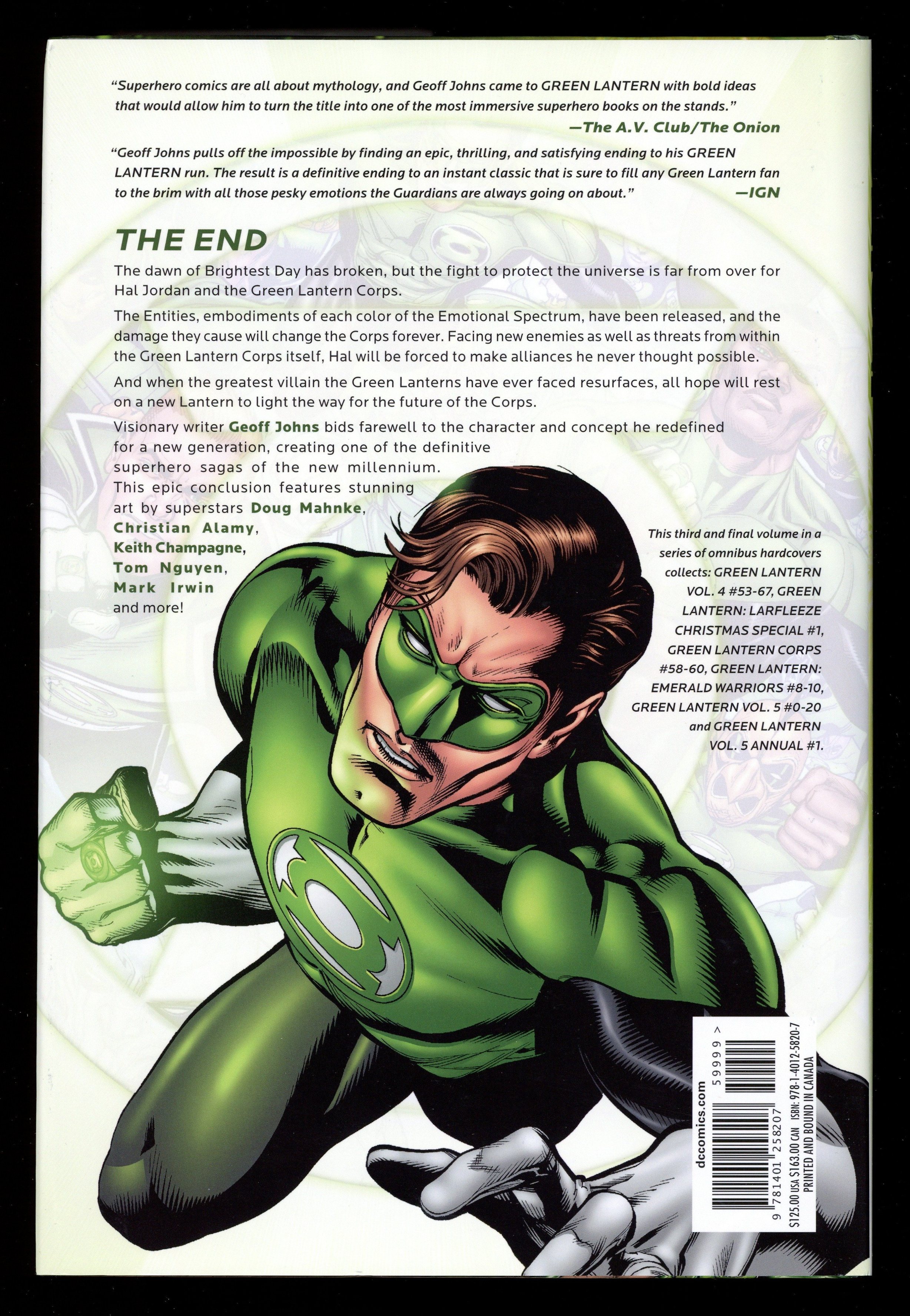 Starts Apr 4 Volume 3 - 2nd and later printings. Collects Green Lantern (2005-2011 3rd Series) #53-60, Green Lantern: Larfleeze Christmas Special (2010 DC), Green Lantern (2011- 4th Series) #1-20, Green Lantern (2011 4th Series) Annual #1, Green Lantern Corps (2006-2011) #58-60, and Green Lantern: Emerald Warriors (2010-2011) #8-10.