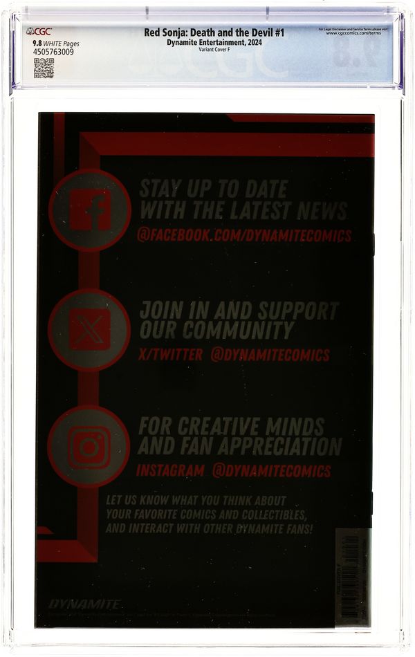 Tags: Red SonjaPublished Sep 2024 by Dynamite Entertainment.Red Sonja Death and the Devil (2024 Dynamite) 1F CGC 9.8