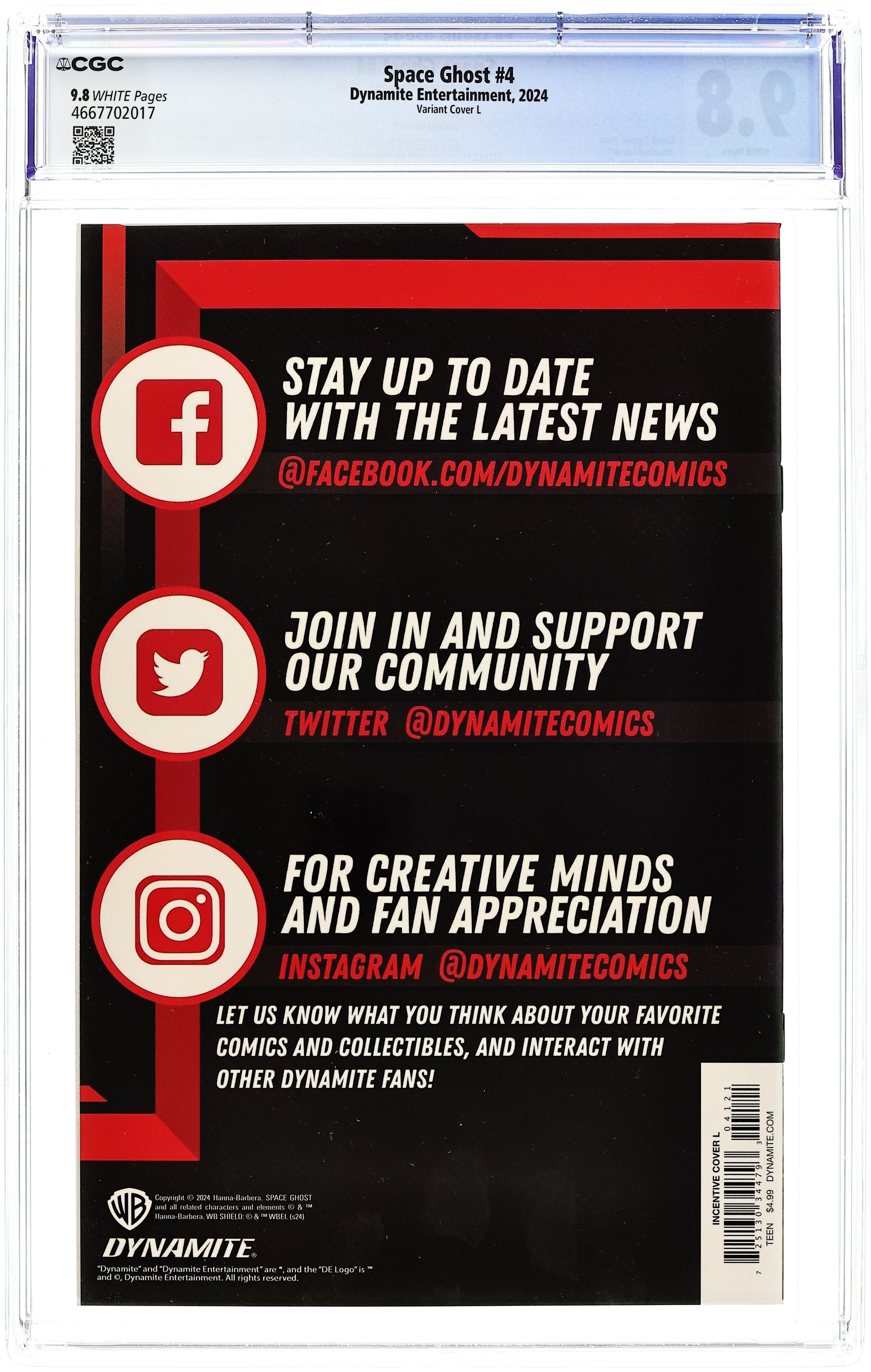 Published 2024 (est.) by Dynamite Entertainment.Space Ghost (2024 Dynamite) 4L CGC 9.8 Lee Virgin 1:40 Variant