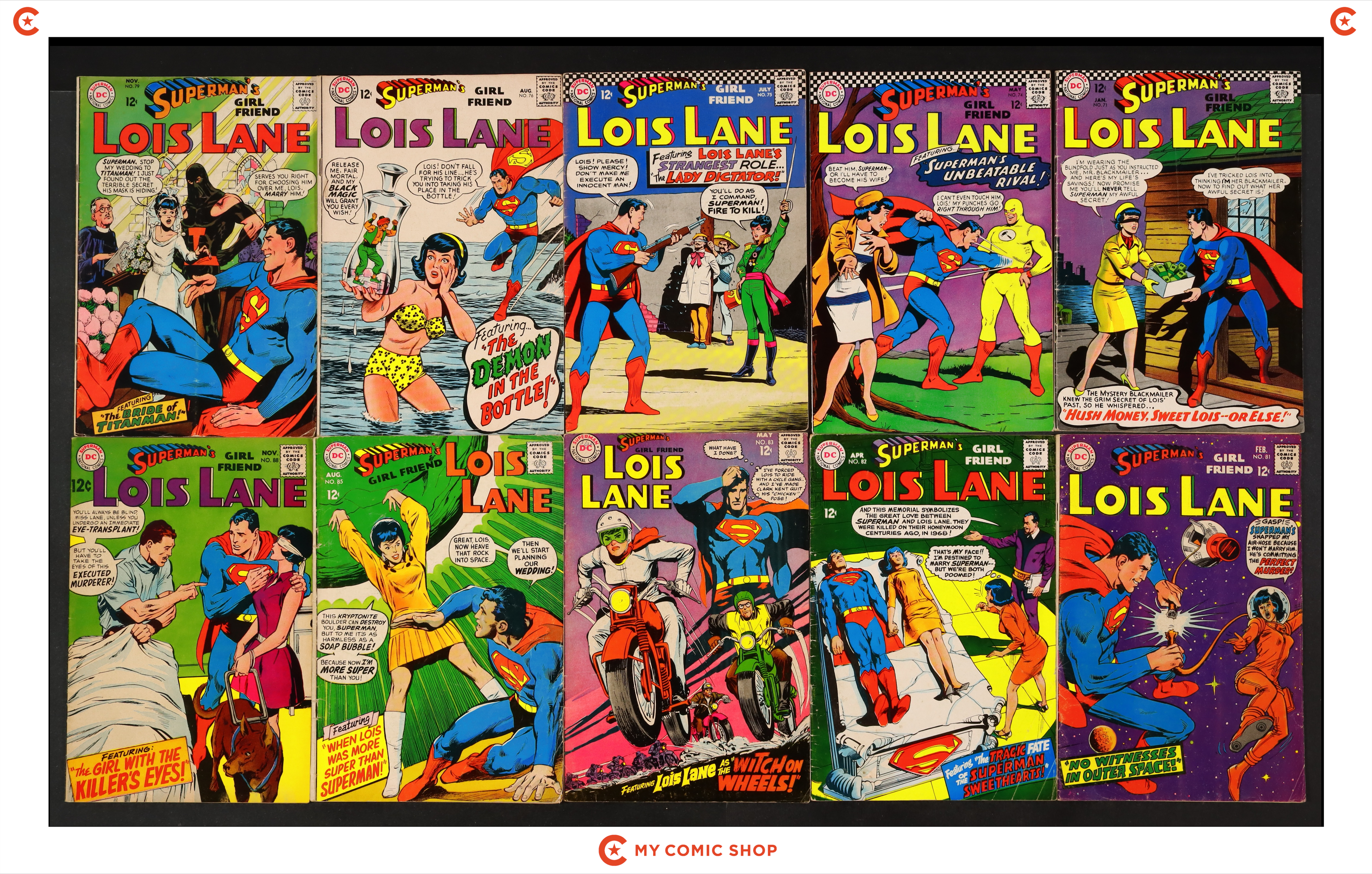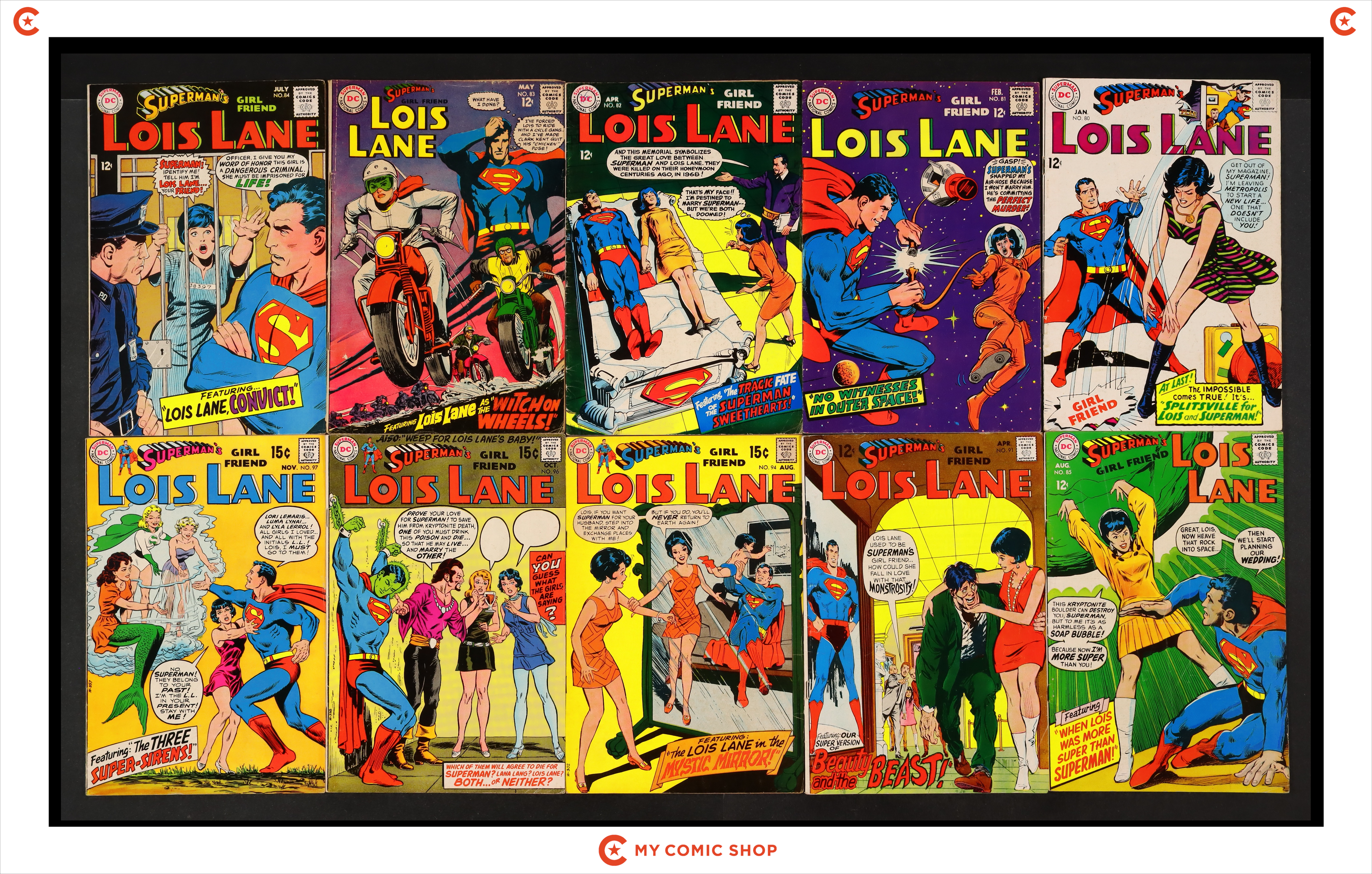 Issues 80-85, 91, 94, 96, and 97 of Superman's Girlfriend Lois Lane (1958). Most will grade in the VG range with a few grading GD.