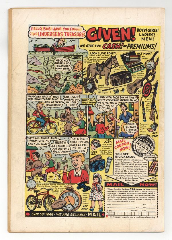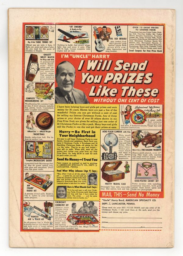Ends Apr 13 9:39 PM CST Bid History 2 bids Current Bid $105 Your Secret Max Bid If you'd like to bid, please log in or register. Cover art by L. B. Cole. "Revenge of the Black Magic Idol"; Amazo destroys Gahna's village and enslaves his people. She pricks her finger on the idol of Janus, which she had hoped would help her defeat Rulah, and dies from its poison. "Silent Death"; Skeeter sends his wife, Liz, to Rulah's village to try out the Red Death bacteria he stole. "The Strangest Punishment" text story. "Mankillers"; Renture keeps his subjects by lying to them that they are cursed; In fact, it is their dimly-lit city that disfigures them. 36 pgs., full color. Cover price $0.10.