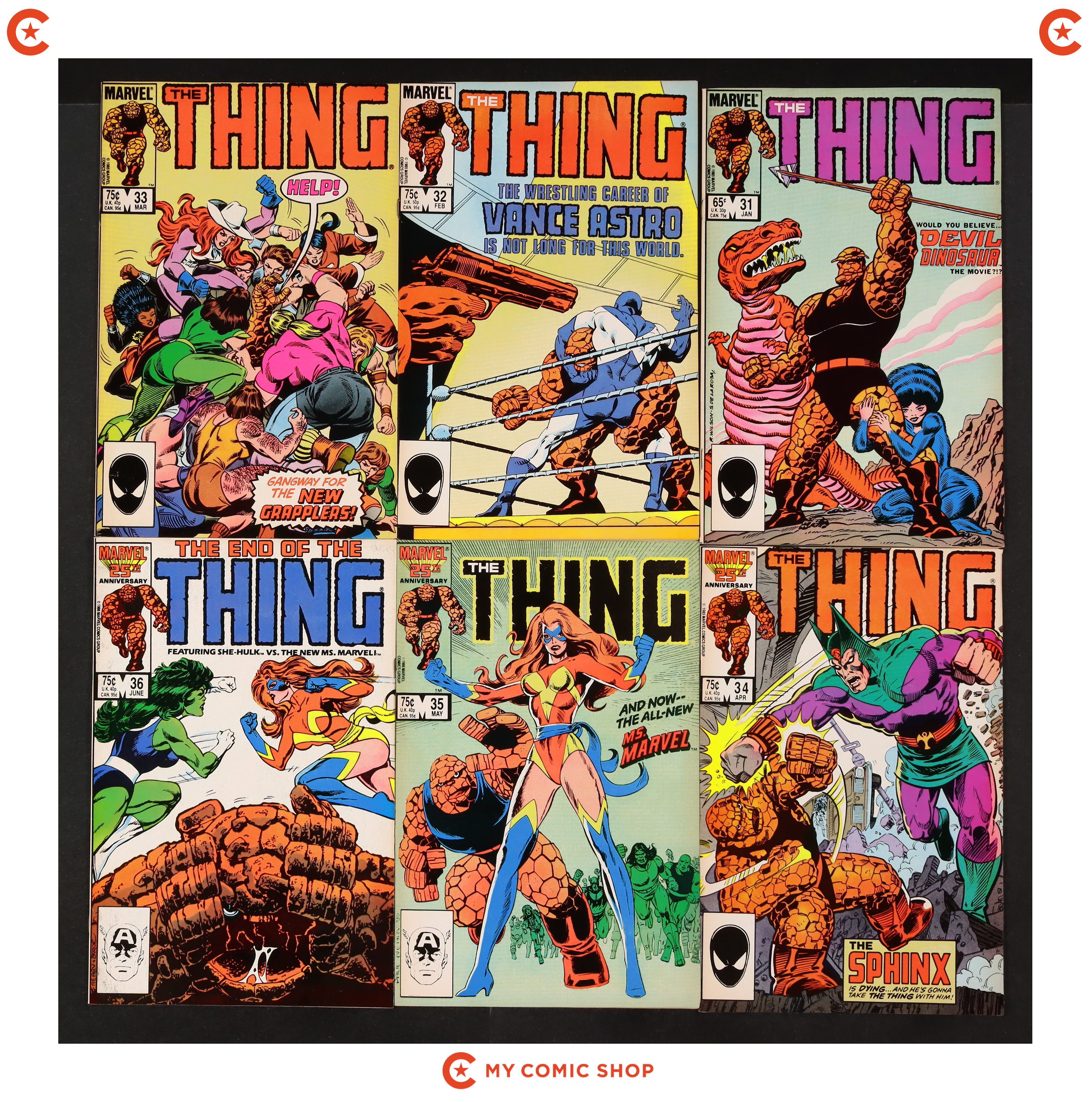 Issues 25-28, 29D, 30-35, 36D of Thing (1983 1st Series Marvel). Most will grade in the FN to VF range.
