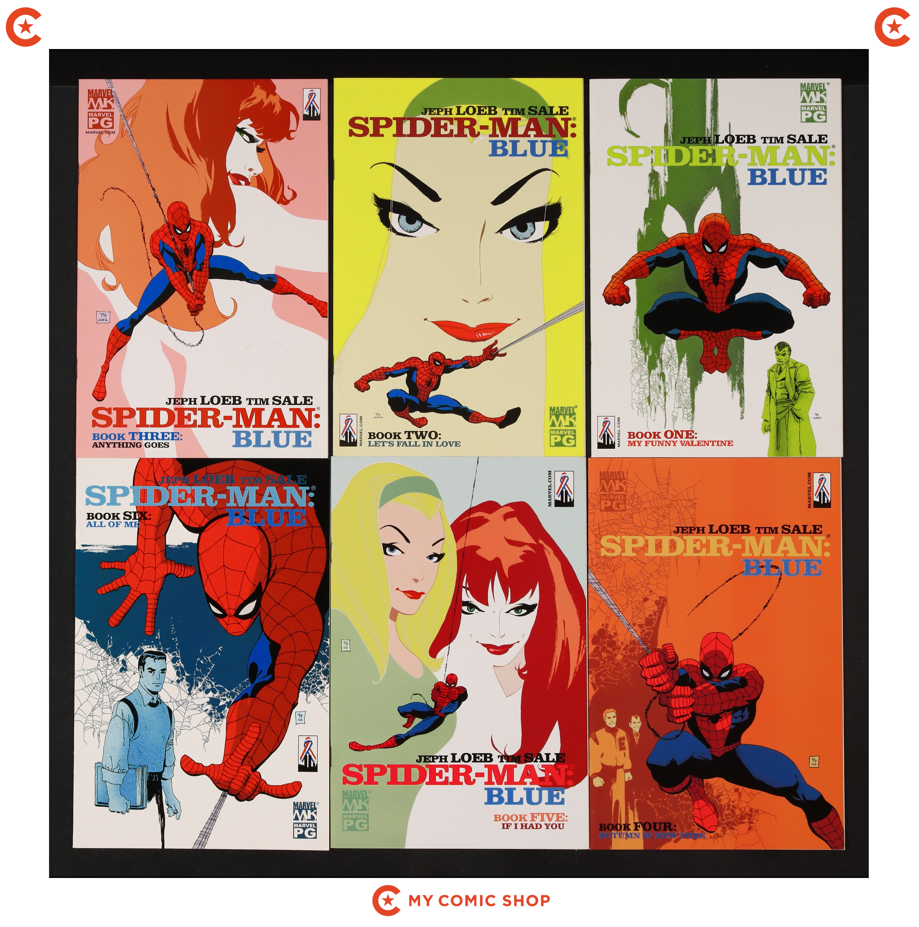 Issues 1-6 of Spider-Man and the Black Cat The Evil That Men Do (2002), and issues 1-6 of Spider-Man Blue (2002). Most will grade in the VF to NM range.