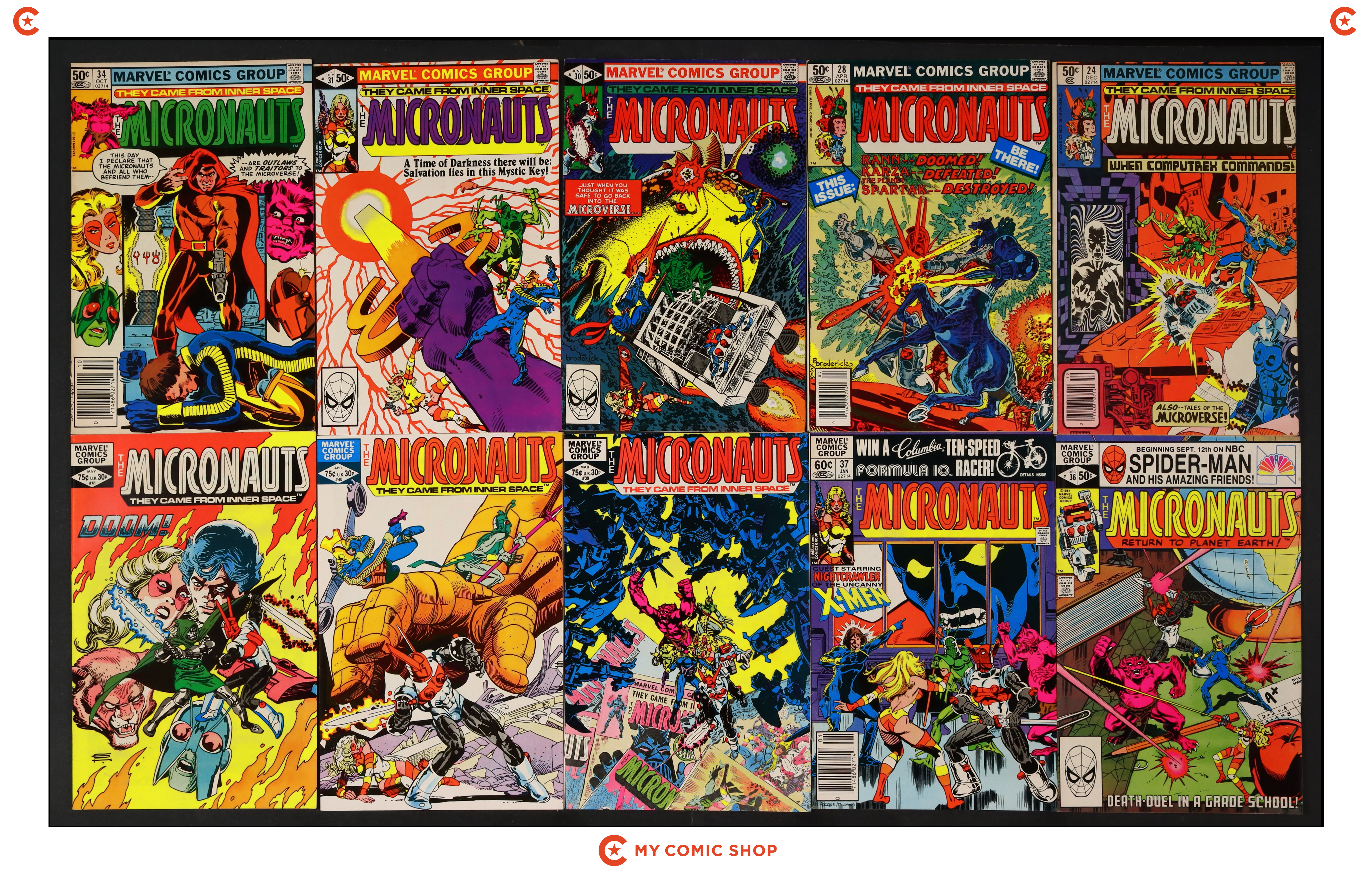 Issues 1, 3, 4, 6-10, 14, and 15 of Metal Hurlant (French 1975-1987 Humanoides Associes). Most will grade in the FN to VG range with #15 grading GD.