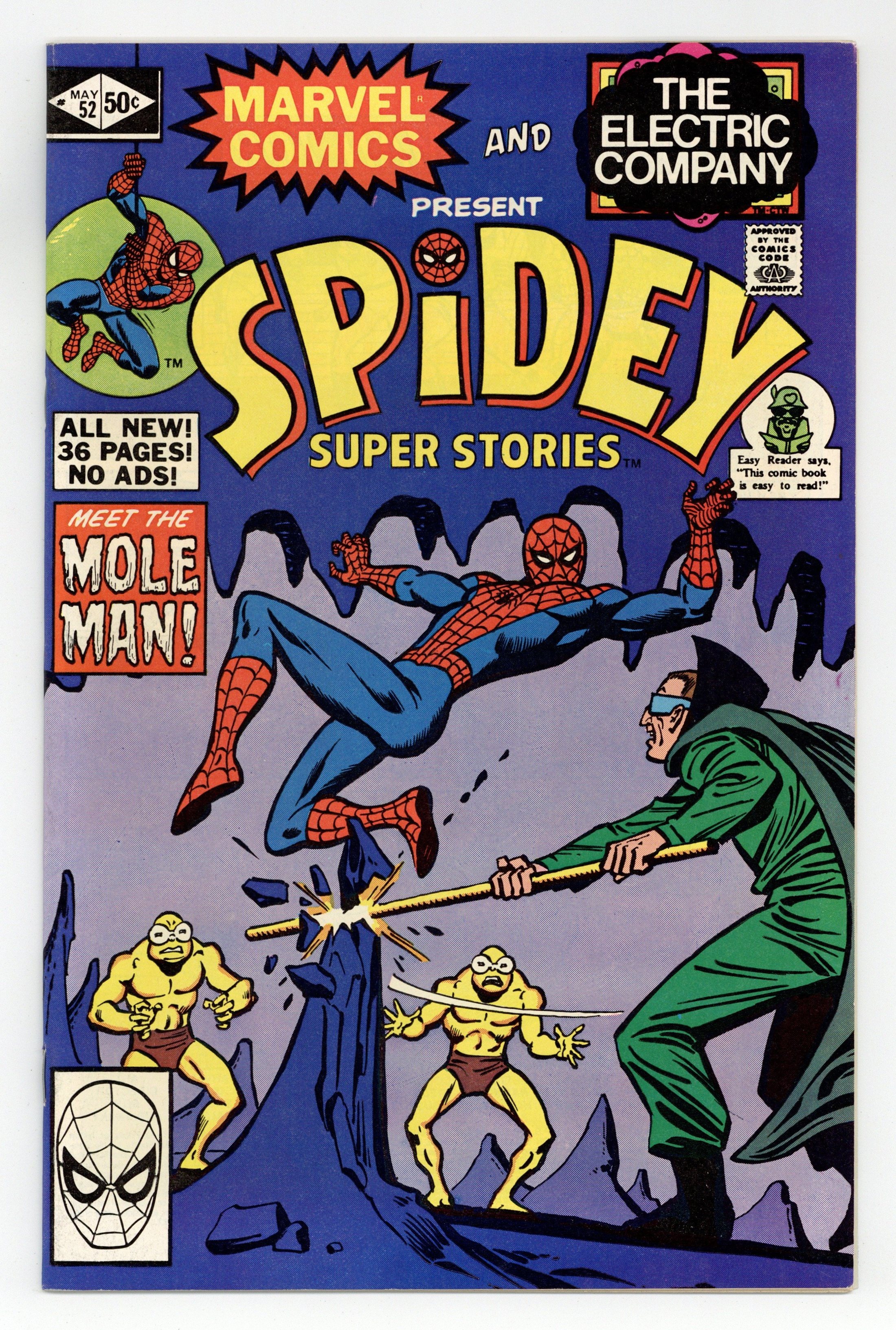 Starts Feb 2 "Mystery of the Mole Machine!" Story by Jim Salicrup and Steve Grant. Art by Winslow Mortimer, Ricardo Villamonte, and Mike Esposito. Spidey battles the Mole Man. Includes the 1-page features "The Blizzard Storms In," "Who is the Human Torch?,"and "Wit of the Webslinger." Includes the back-up tale "The Real Spidey!" Guest-starring the cast of the Electric Company. Plus, Spidey gets some help from the Human Torch against the Blizzard in "The Big Freeze!" Featuring the clip and collect Spidey Stamp: #36 Blizzard. Cover price $0.50.