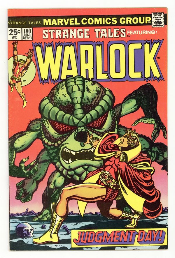 Starts Mar 2 Cover art by Jim Starlin. "Death Ship!", script and art by Jim Starlin; Warlock is captured by Autolycus of the Black Knights an brought aboard Magus' Flagship; His fellow prisoners tell Warlock, that survivors of the Wars of the Church are taken as slave laborers, those who refuse will be terminated and their remains will be chemically broken down and valuable elements that can be retrieved will be used to further the cause of the Church; They also tell him, that Non-Humanoids are not considered fashioned in the Magus' image and thus must be disposed of, this also holds true for some Humanoid types—such as Trolls; First appearance of Pip the Troll. 36 pgs., full color. Cover price $0.25.