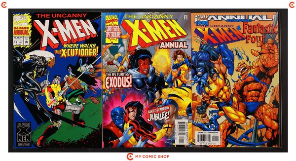 Issues 11-16, 17U, 18, 1995, 1996, 1997, 1998, and 1999 of Uncanny X-Men (1963 1st Series) Annual. Most will grade in the NM to VF range with a couple grading FN.