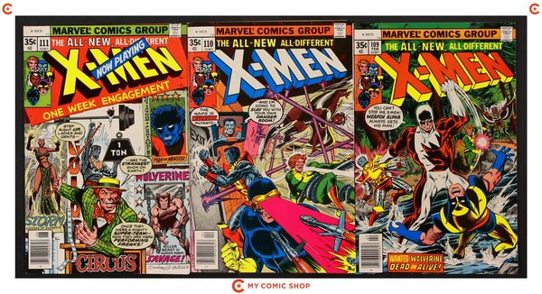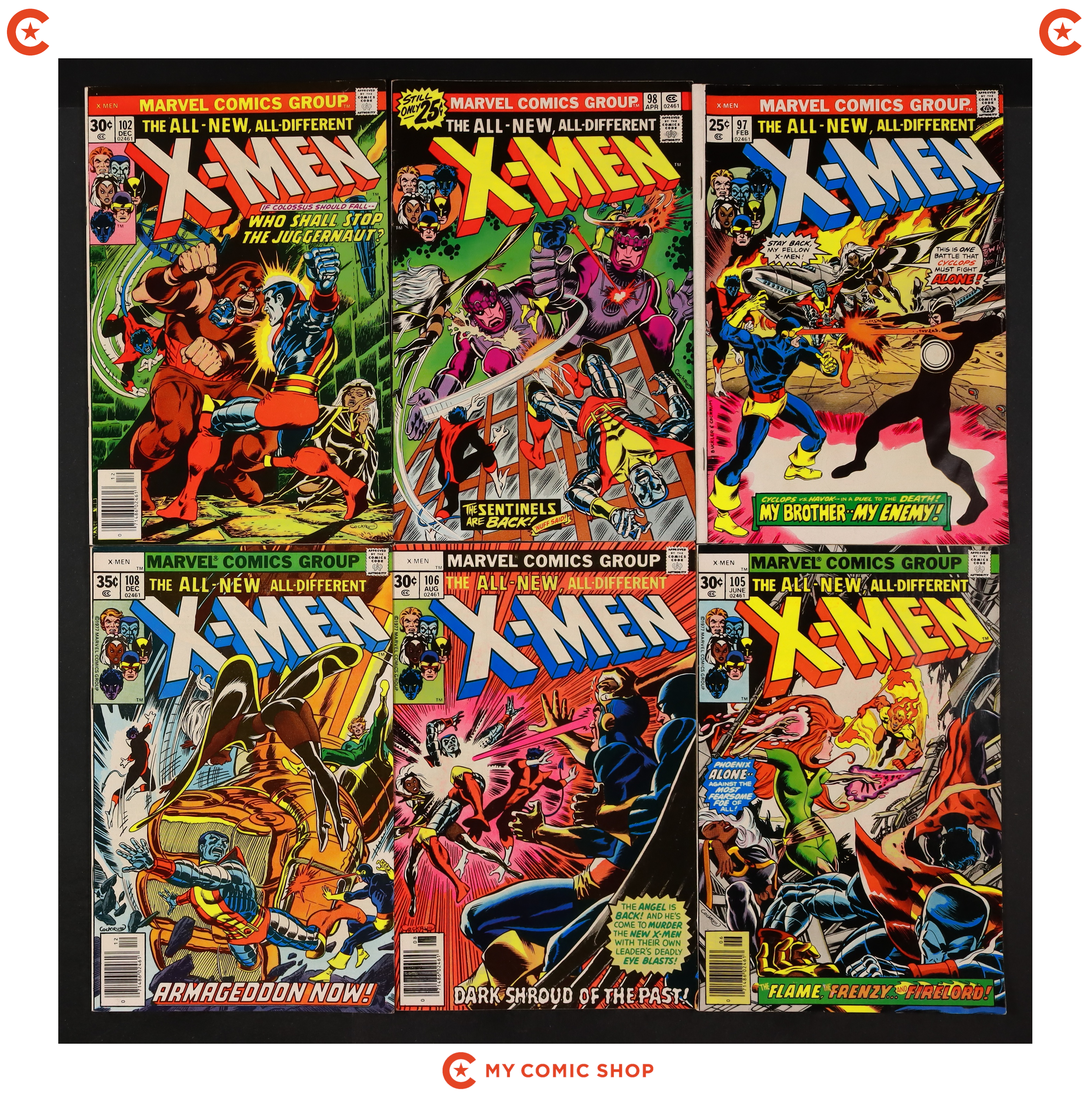 Issues 97, 98, 102, 105, 106, and 108-111 of Uncanny X-Men (1963 1st Series). Most will grade in the FN to VG range.