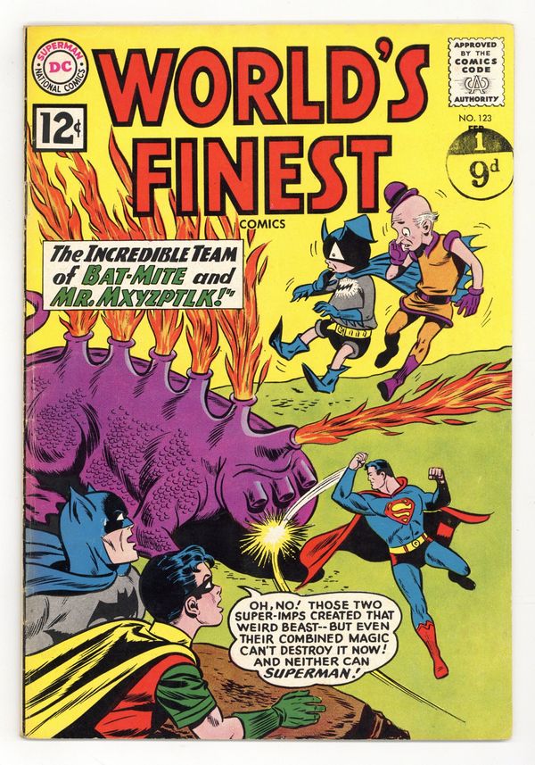 Starts Jan 26 Cover pencils by Dick Dillin, inks by Sheldon Moldoff. The Incredible Team of Bat-Mite and Mr. Mxyzptlk starring Superman and Batman, script by Jerry Coleman, pencils by Dick Sprang, inks by Sheldon Moldoff; Mxyzptlk and Bat-Mite discover when they use their magic together they can't control the outcome. The Day They Grounded Tommy Tomorrow, script by Jack Miller, art by Jim Mooney. Ollie humor page by Henry Boltinoff. The Man Who Foretold Disaster starring Green Arrow, script by Dick Wood, art by Lee Elias; Prof Marlo claims to be able to foretell disasters. Statement of ownership--average paid circulation 480,000. 36 Pages, Full Color. Cover price $0.12.