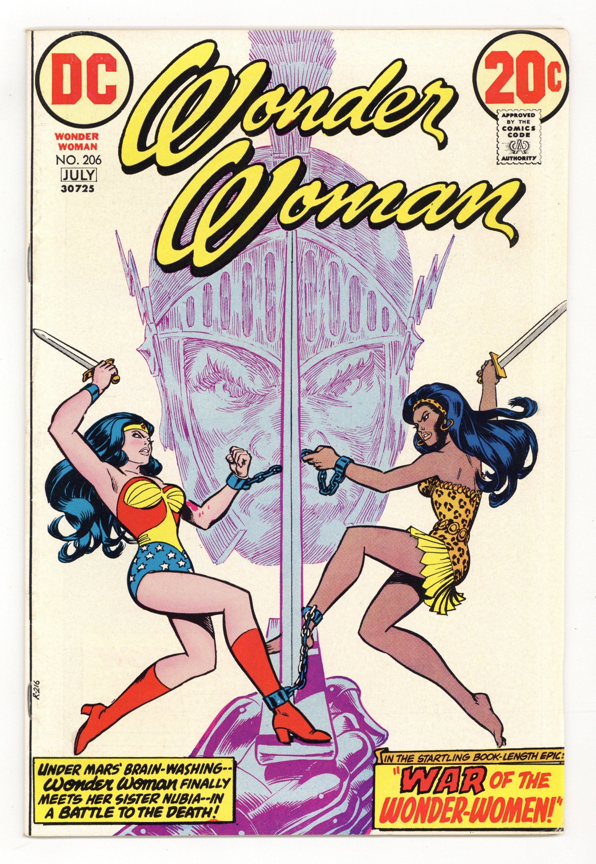 Starts Jan 26 Cover by Nick Cardy. "War of the Wonder Women!", script by Cary Bates, pencils by Don Heck, inks by Vince Colletta; Wonder Woman learns untold facts about her origin: that a second statue of a child, created from black clay, was created by Queen Hippolyta at the same time as she was, and was also given life by Aphrodite, becoming Nubia, who was stolen from her cradle by Mars; Now Nubia has become the adult pupil of Mars, and is set against Wonder Woman just as Mars attacks Paradise Island. 36 pages, Full Color. Cover price $0.20.