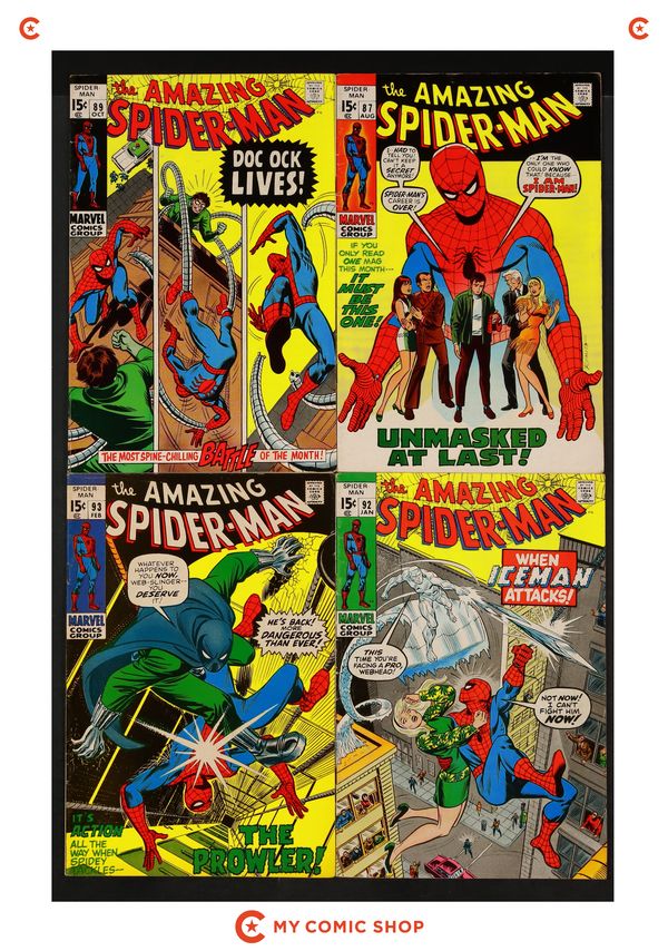 Issues 87, 89, 92, 93 of Amazing Spider-Man (1963 1st Series). Most will grade in the VG to FN range.