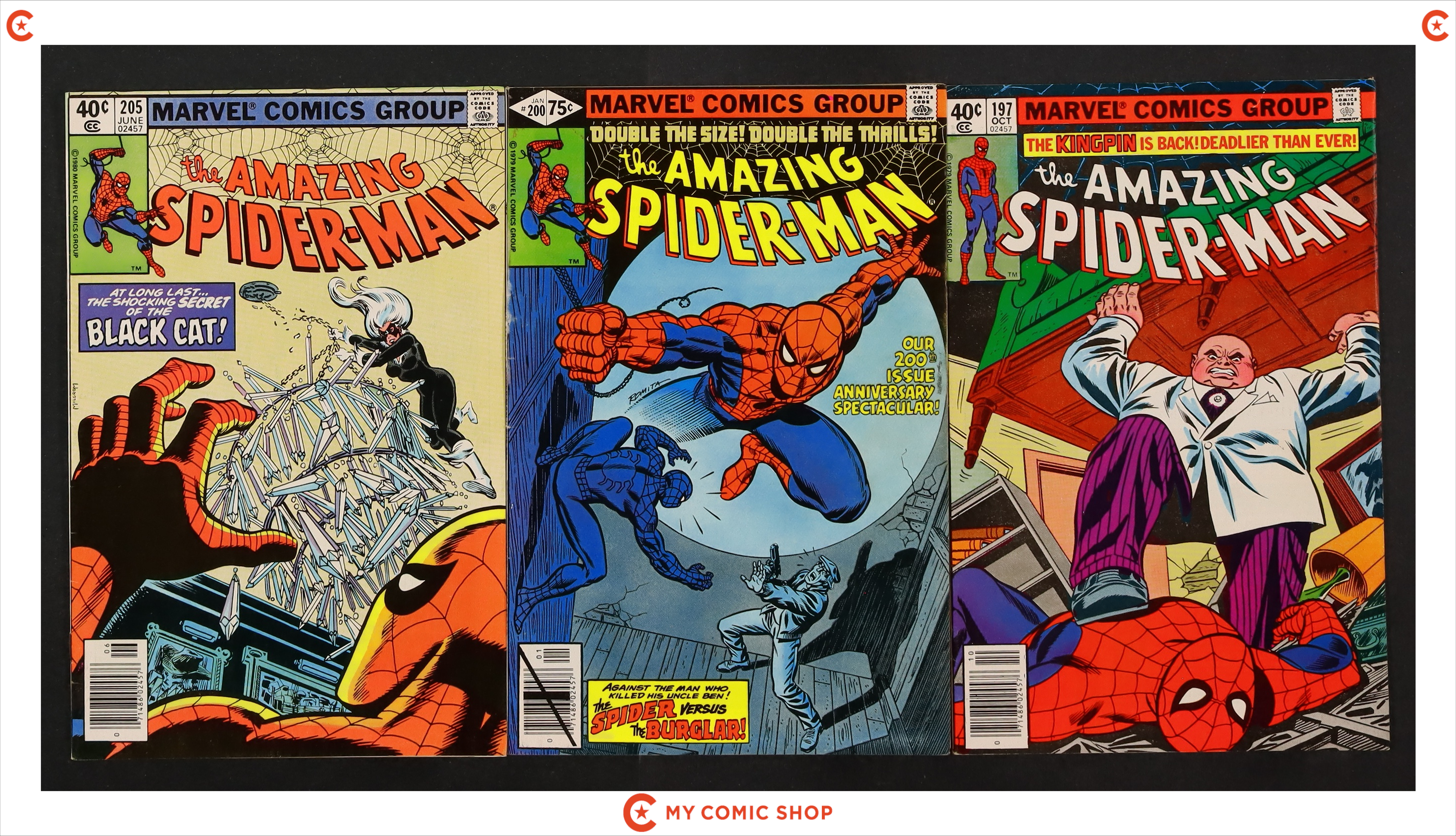 Issues 156, 192, 193N, 196N, 197N, 200, 205N of Amazing Spider-Man (1963 1st Series). Most will grade in the VG to FN range, with #193 grading at GD/VG.