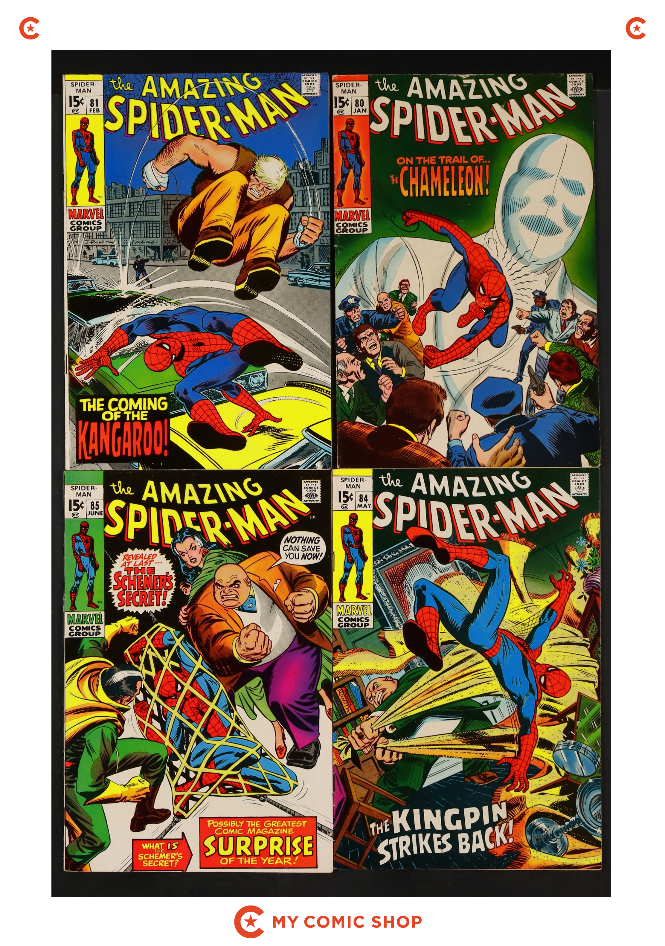 Issues 80, 81, 84, 85 of Amazing Spider-Man (1963 1st Series). Most will grade in the FN range with #80 grading GD/VG.
