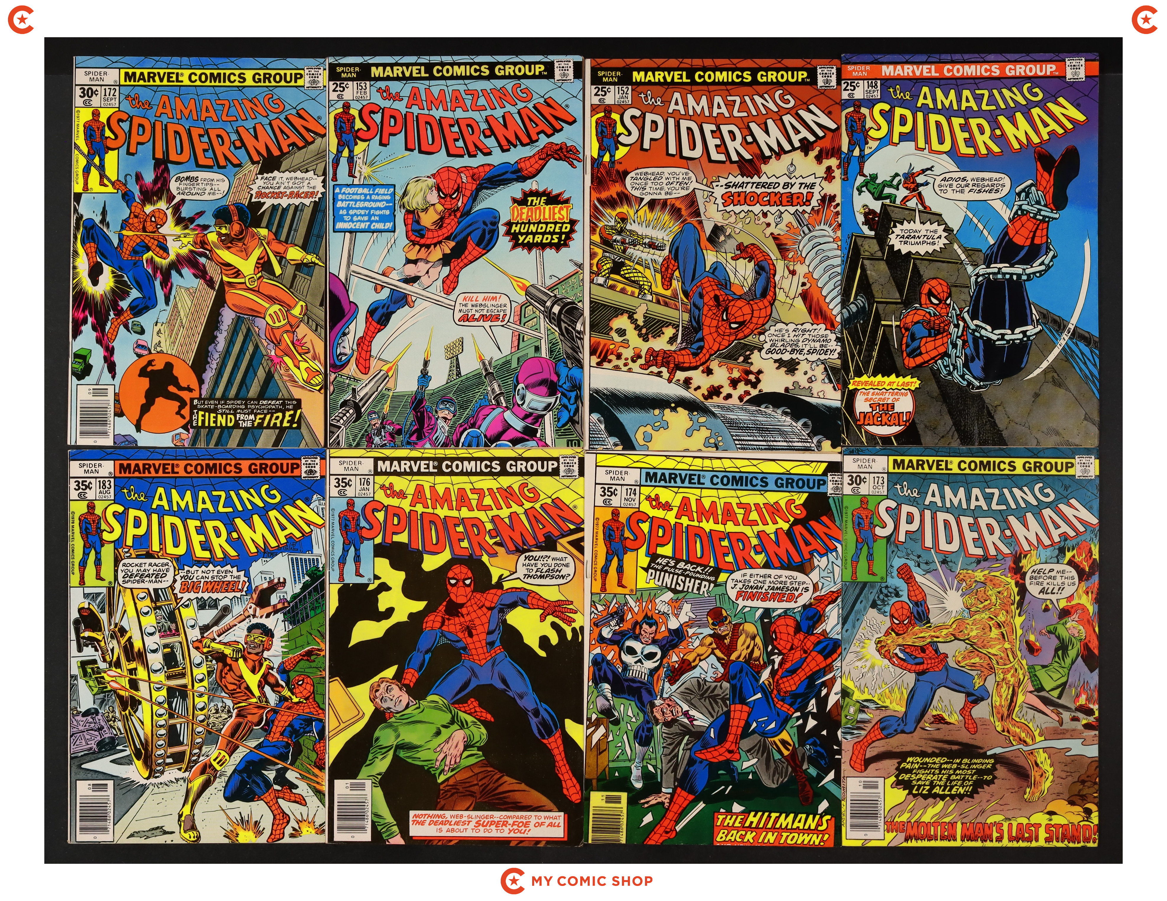 Issues 148, 152, 153, 172-174, 176, and 183 of Amazing Spider-Man (1963 1st Series). Most will grade in the FN with a few grading VG.