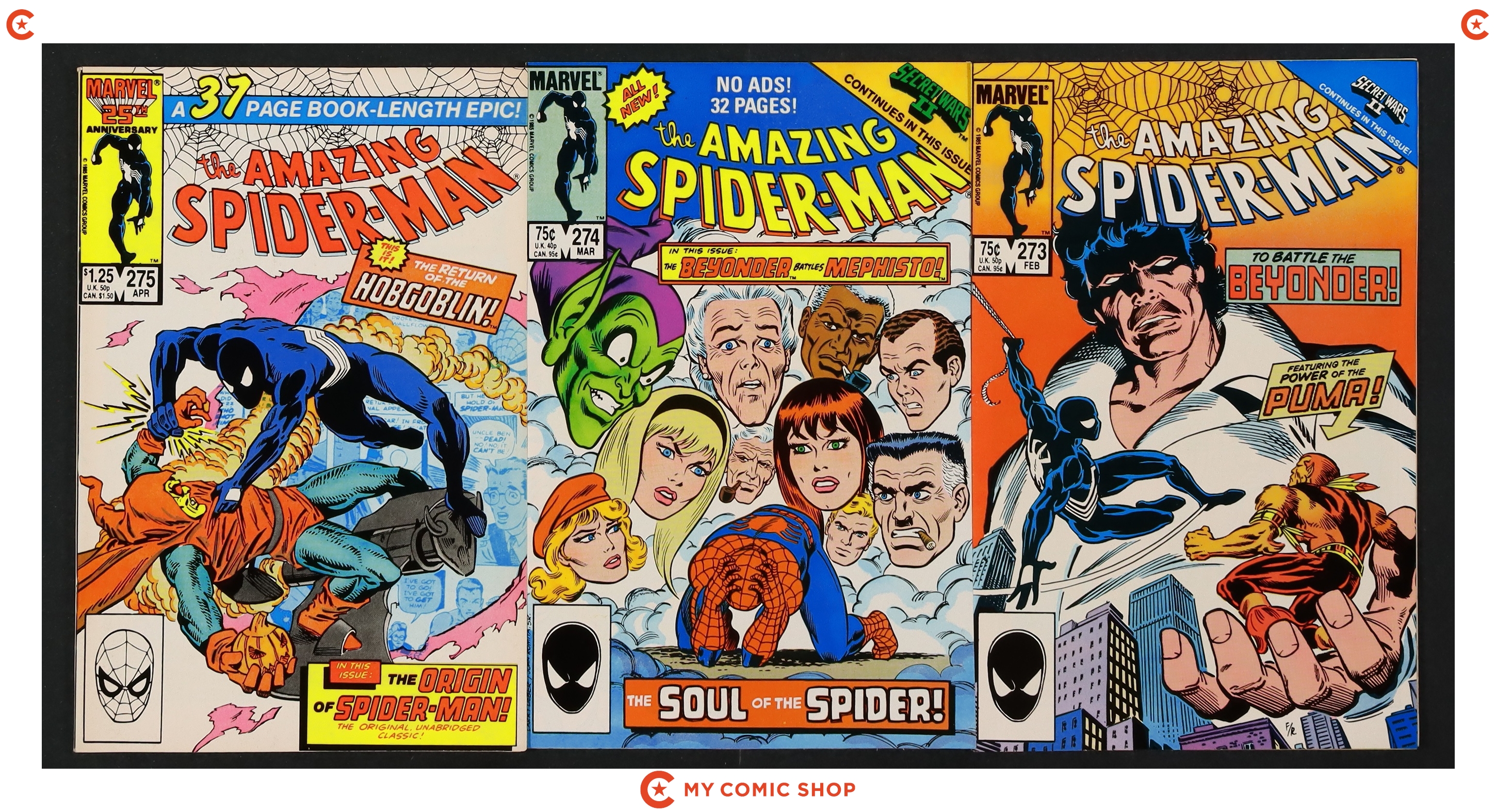 Issues 270D-273D, 274-276, 277D, and 278N of Amazing Spider-Man (1963 1st Series). Most will grade in the FN to VG range.