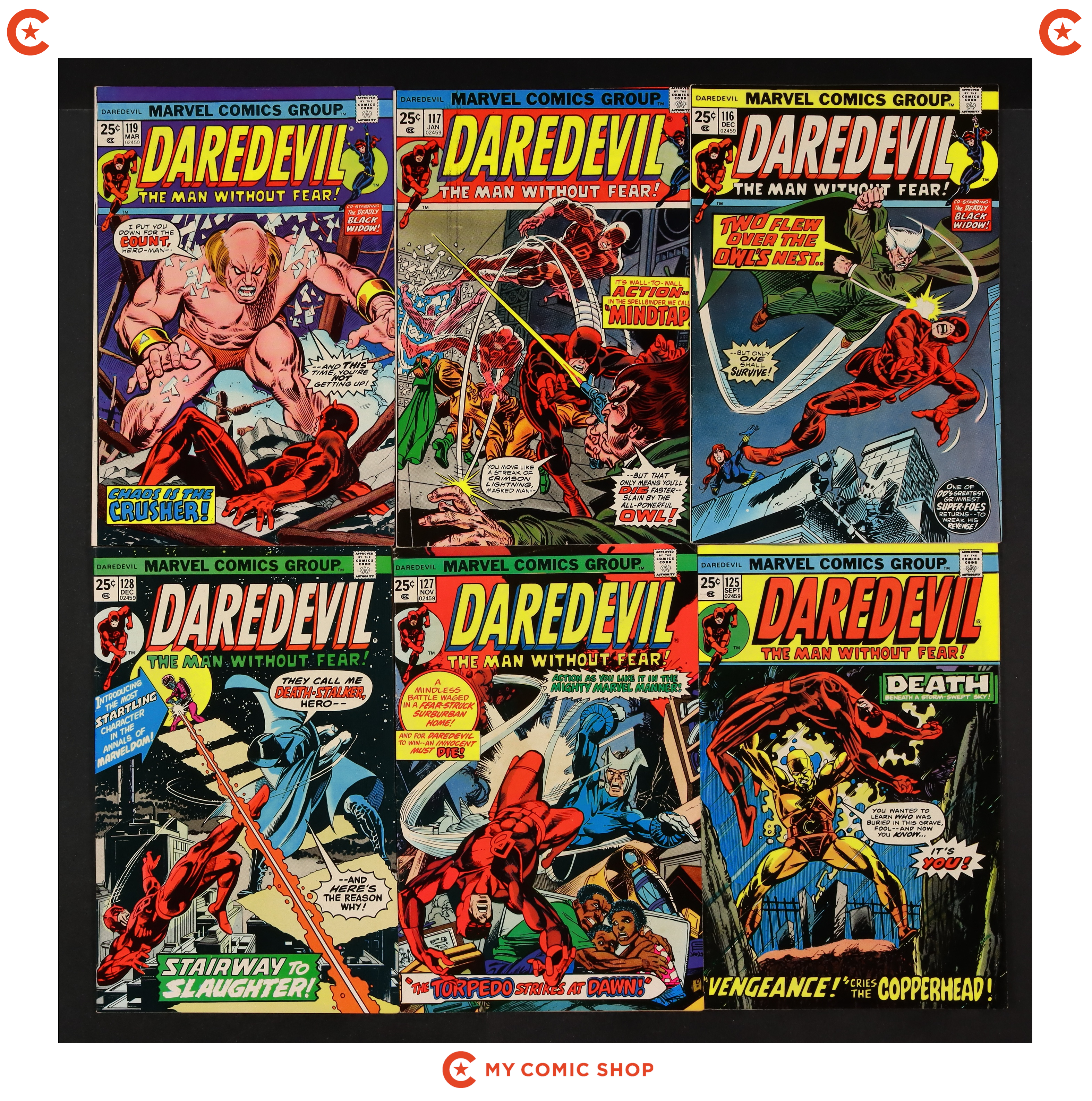 Issues 116, 117, 119, 125, 127-130, and 148 of Daredevil (1964 1st Series). Most will grade in the FN range with a couple grading VG.