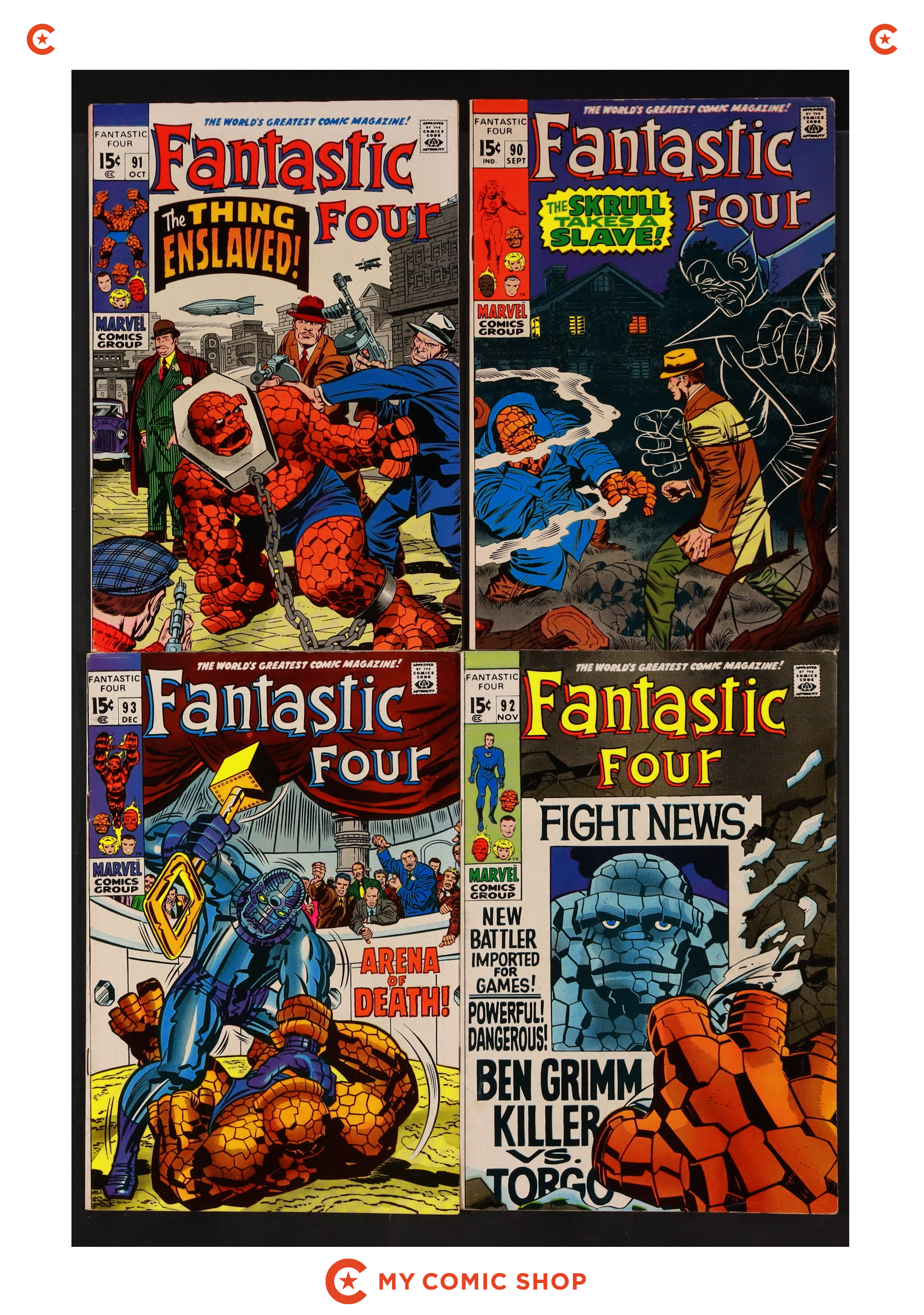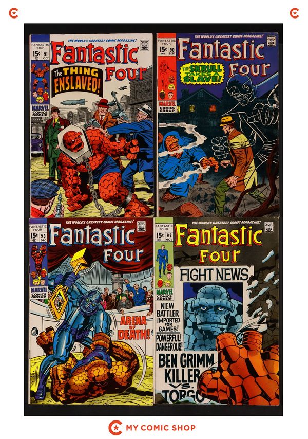 Issues 90-93 of Fantastic Four (1961 1st Series). Most will grade in the VG to FN range.