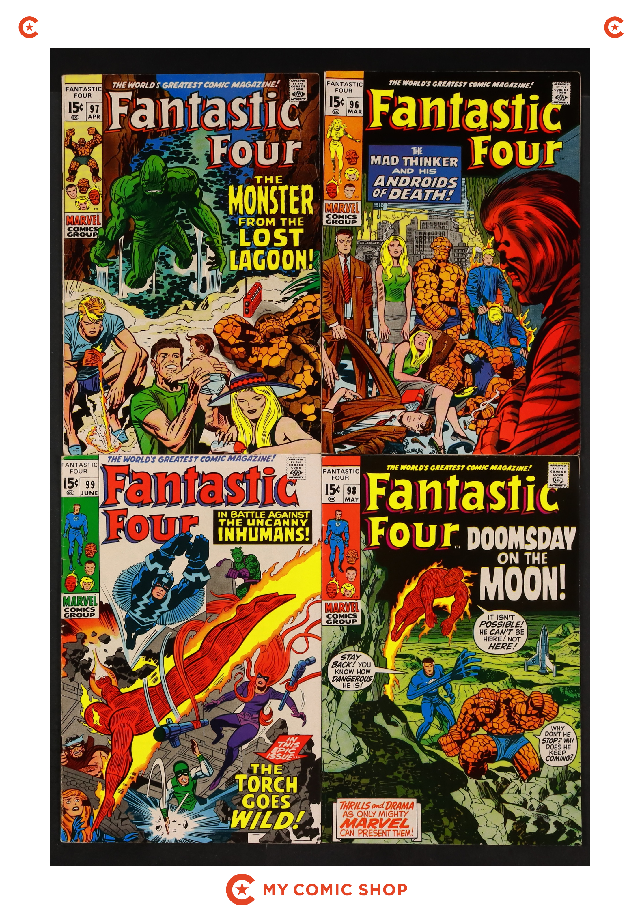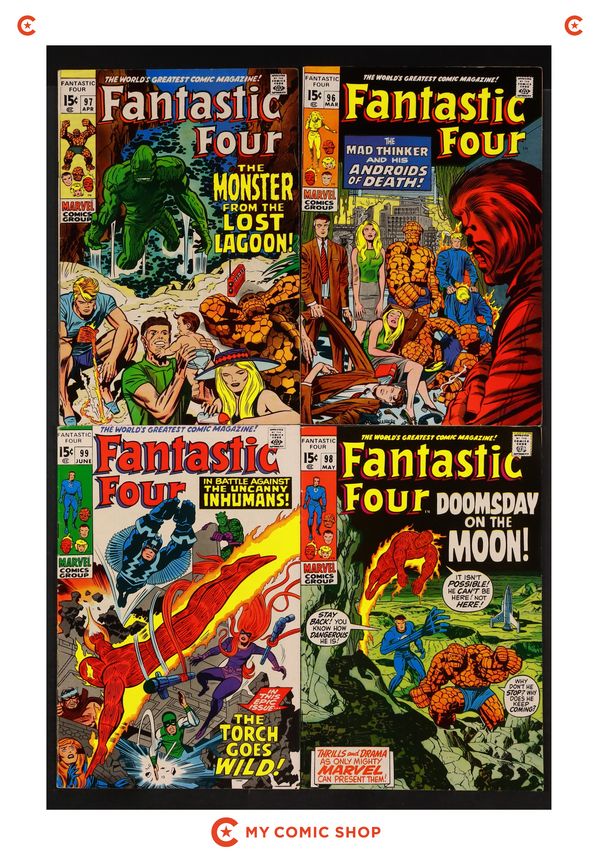 Issues 96-99 of Fantastic Four (1961 1st Series). Most will grade in the VG to FN range.