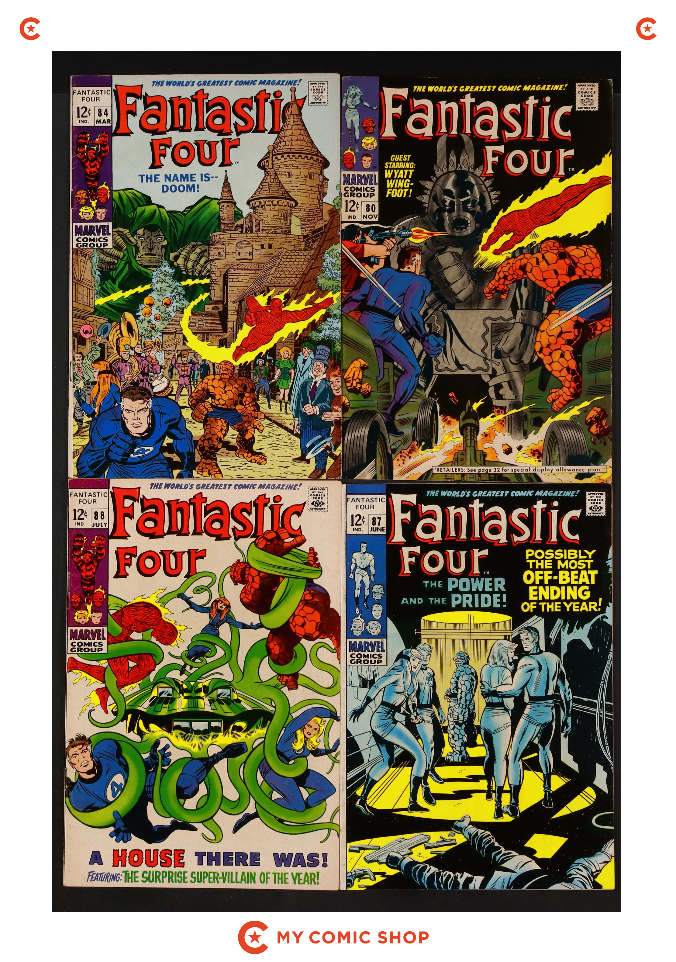 Issues 80, 84, 87, 88 of Fantastic Four (1961 1st Series). Most will grade in the VG to FN range.