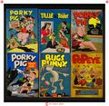 Ends Jan 12 8:17 PM CST Bid History 12 bids Current Bid $50 Your Secret Max Bid If you'd like to bid, please log in or register. Indicia title is "PORKY PIG, No. 16." Cover art by Chase Craig. Porky and Petunia paint an introduction to the stories in the issue on a board fence, art by Carl Buettner. Porky Pig and -Sh-h-h!!- Th' Secret of the Haunted House!, script by Chase Craig, art by Carl Buettner; Porky and Petunia spend the night in a haunted house, not knowing that it's the hideout for a gang of counterfeiters. Porky Pig Meets Beaky Buzzard, script and art by Chase Craig; Porky and his friends write millionaire Wilfred Crump to ask for a small loan to buy a gold mine. Hollywood gossip style page of facts about Porky, art by Carl Buettner. Porky paints "That's All Folks!" on the same board fence as the inside front cover, art by Carl Buettner. 68 pages, full color. Cover price $0.10.