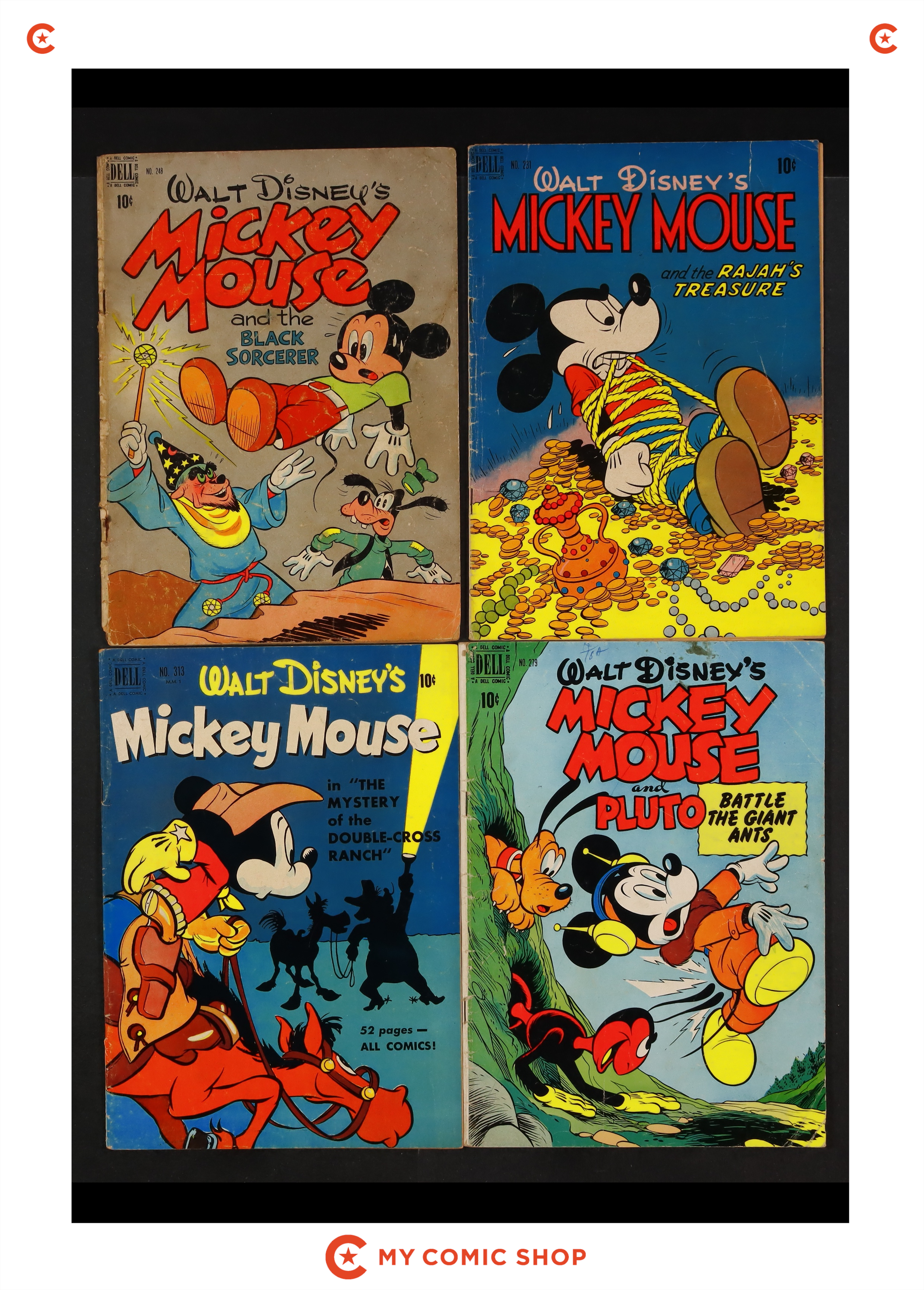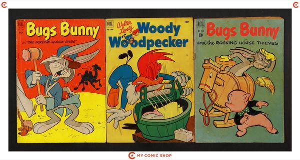 Issues 231, 248, 279, 313 of Four Color (1942-1962 Dell 2nd Series). Most will grade in the GD to VG- range.